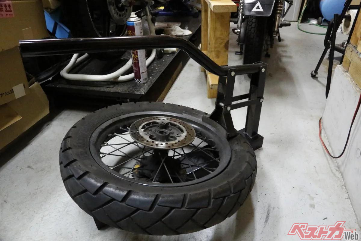 車体からホイールを外すか、車体に付けたまま作業するかは、状況によって判断しましょう。センタースタンド付きでリヤタイヤのパンクなら、タイヤを外さずチューブを引き出せる場合もありますが、サイドスタンドのみのバイクはホイールを外した方が作業しやすいことが多いようです。