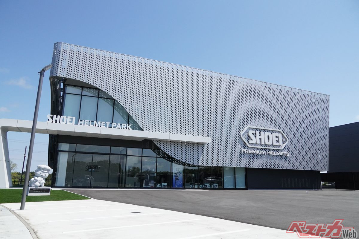 SHOEI茨城工場の敷地を拡張して建造されたSHOEIヘルメットパークは、同社の現行全ラインナップはもちろん、歴史的なモデルや著名レーサーの愛用ヘルメットなどを中心に展示する企業ミュージアムだ。