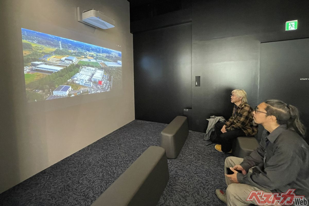 シアターでは工場の詳細やヘルメットの製造工程を動画で学べる。