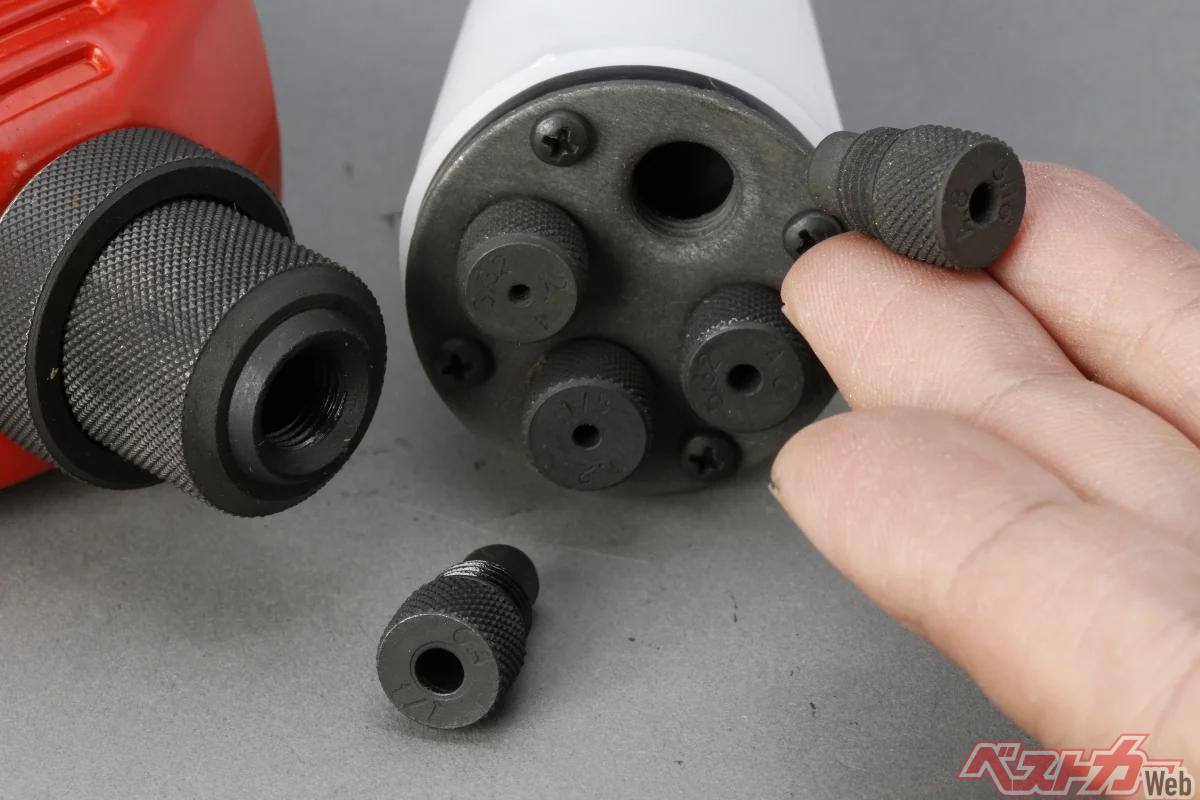 リベットのサイズに応じてノーズピースを使い分ける