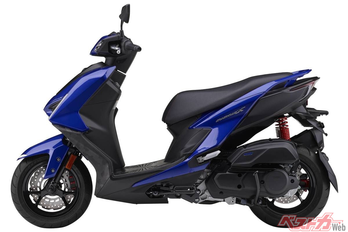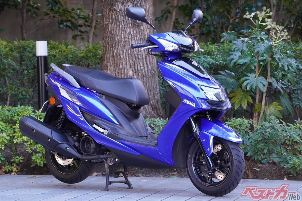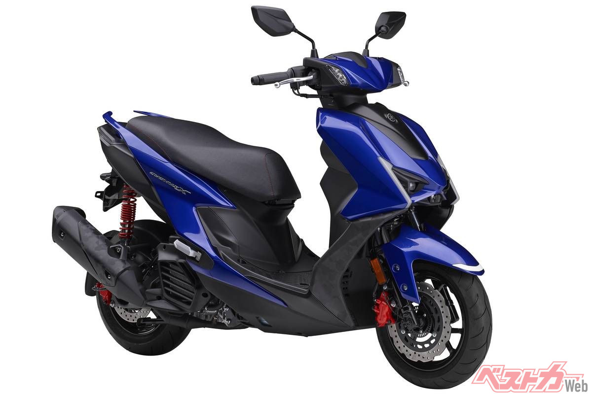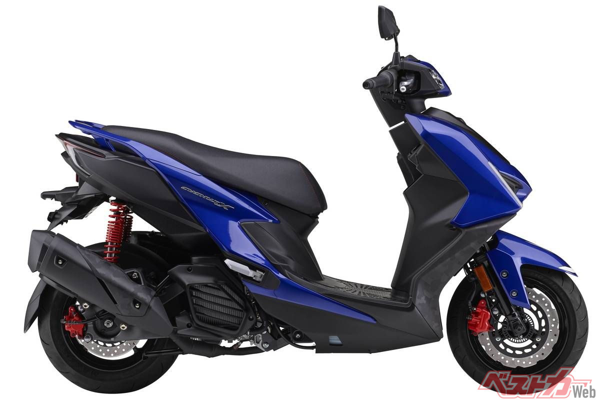 エンジンはシグナス グリファス搭載の水冷124ccのブルーコアエンジンをもとに、CVTのウェイト軽量化やスプリング荷重調整を行うことで加速感を向上。さらに濡れた路面や砂利道での滑りを抑制するトラクションコントロール(TCS)を新採用した。排気系においてもマフラーのテールパイプ径を拡大し、全域で心地よいサウンドを響かせる仕様へ見直されている。