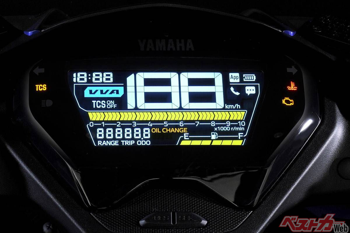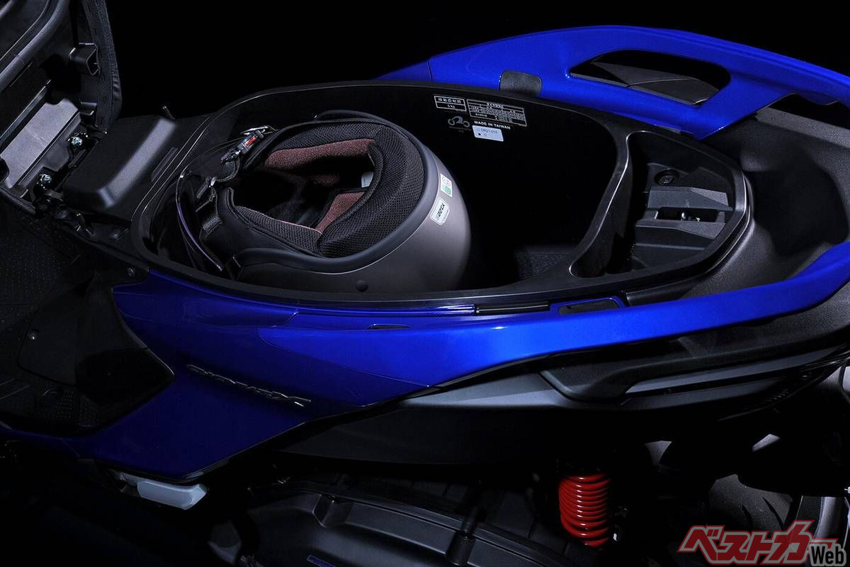 装備面では、メーターは自動調光機能や推定航続可能距離を表示できる4.6インチカラーLCDメーターを採用。シート下のトランクスペースは約28リットルの容量を確保しており、フルフェイスヘルメットも格納できる。フロント周りにはペットボトルが収まるサイズの小物入れ、急速充電規格に対応したUSB Type-Cの充電ソケットを標準装備した。シート高は785mmで、形状の見直しとクッション材の変更により良好な足つき性と疲れにくい乗り心地を実現した。