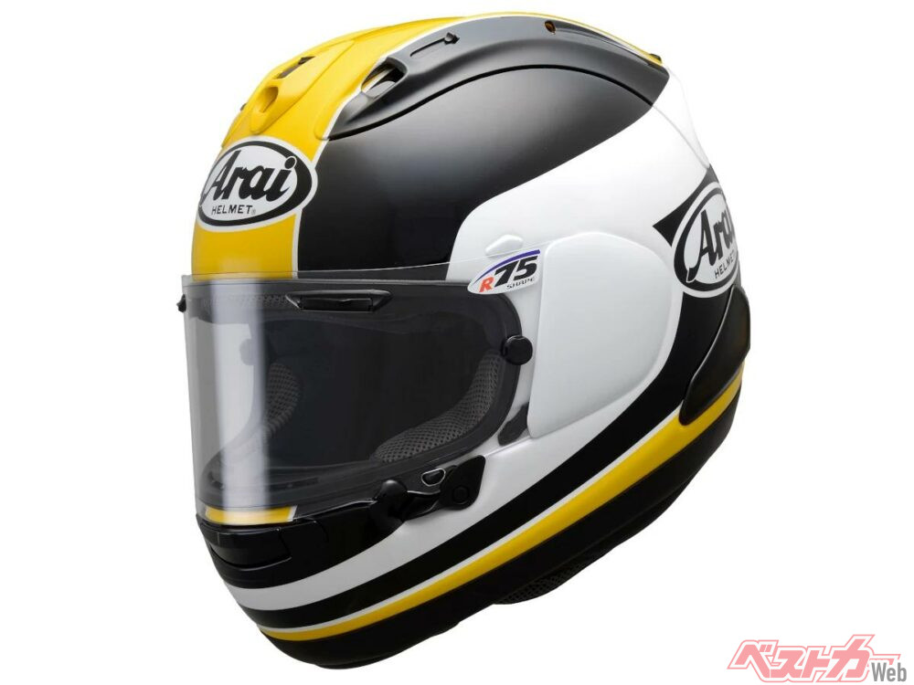 1980年代より多くのロードレースファンを魅了したGPライダー平忠彦氏。Araiよりいくつかのレプリカモデルが発売され、当時のファンから今でも根強い人気を誇っている。