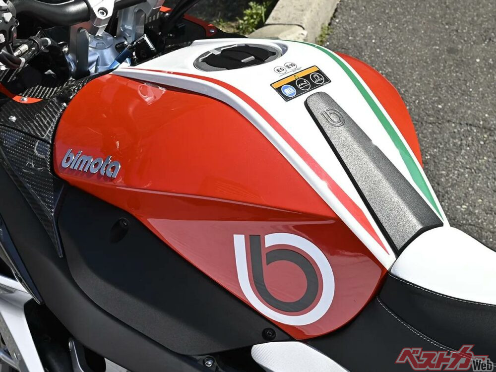 フューエルタンクの容量は22Lを確保。ビモータの立体エンブレムの他に、「b」のロゴがニーグリップ部に配される。