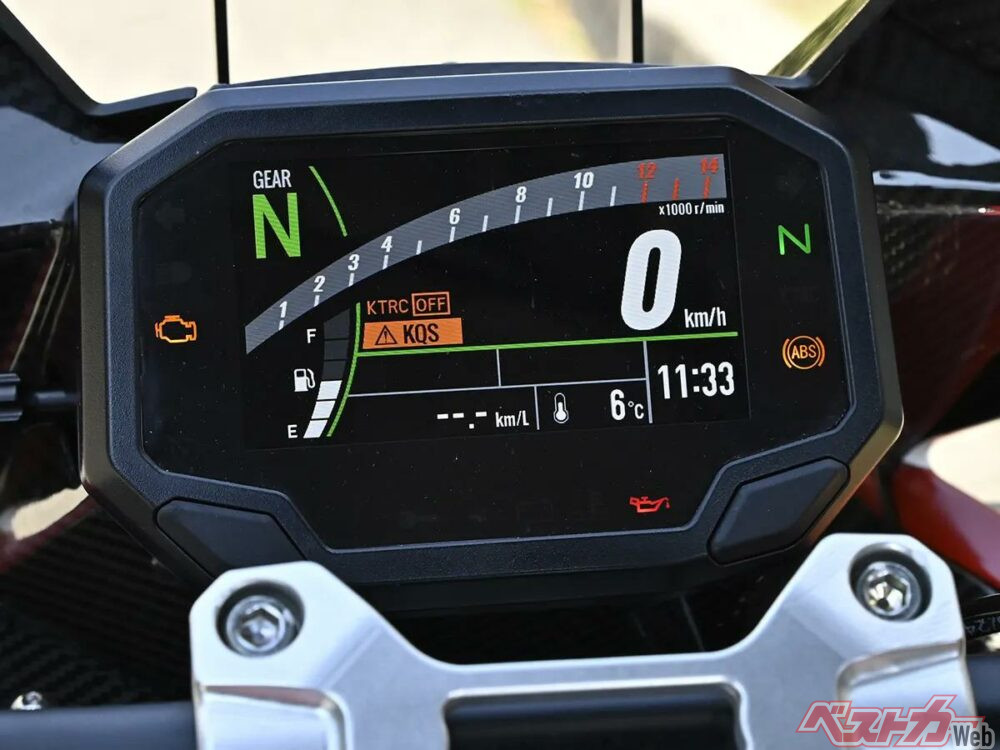 電子制御は3モードのKTRIC(カワサキトラクションコントロール)やクルーズコントロール、エンジンやシャーシの電子制御を統括してスムーズなコーナリングを実現するKCMF(カワサキコーナリングマネージメントファンクション)、上下対応のKQS(カワサキクイックシフター)など最新のものが与えられ、安全かつ速く走ることが可能となっている。