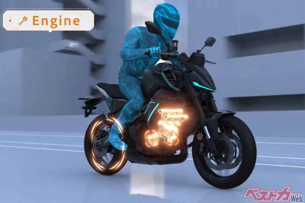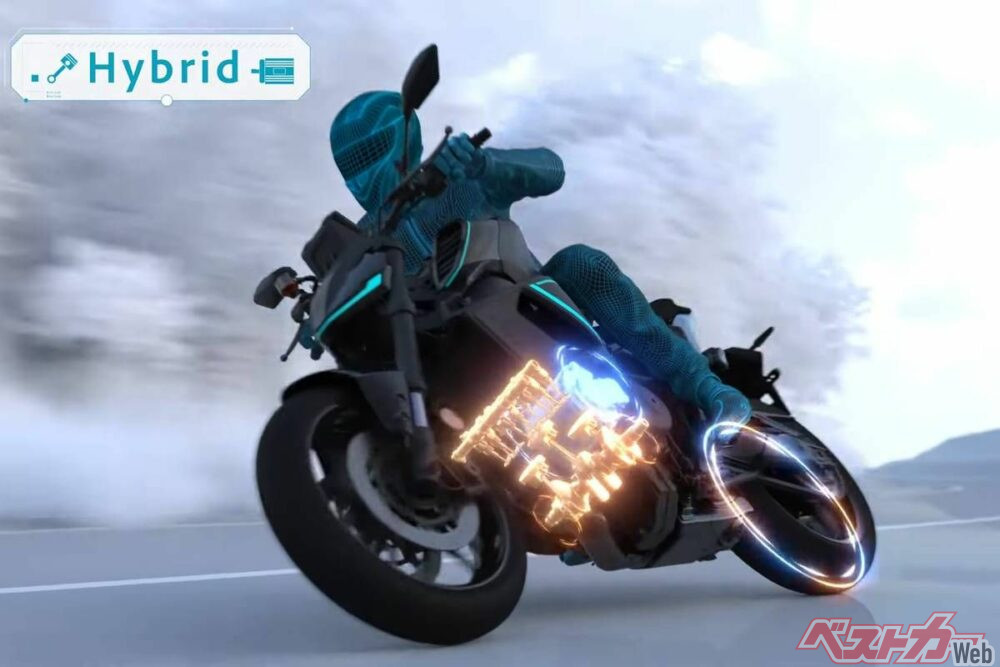 ヤマハが開発を進めているシステム「SPHEV」は、エンジンとモーターのハイブリッド搭載により、脱炭素社会へ向けて実用化を目指す新技術だ。自動車では一般化しているハイブリッド技術だが、メカニズムの複雑さ、大型化といった難点もあり、バイクへの搭載はあまり進んでおらず、2025年現在はカワサキがラインナップするのみだ。これに対し、ヤマハが明らかにしたハイブリッドシステムでは、EVのスムーズな加速と静粛性、エンジンのパワーとフィーリングを両立させるため、モーターとエンジンを同時駆動させるアシスト機能を備え、通常のガソリンエンジンを超える強烈な運動性能も実現しているのが特徴的だ。