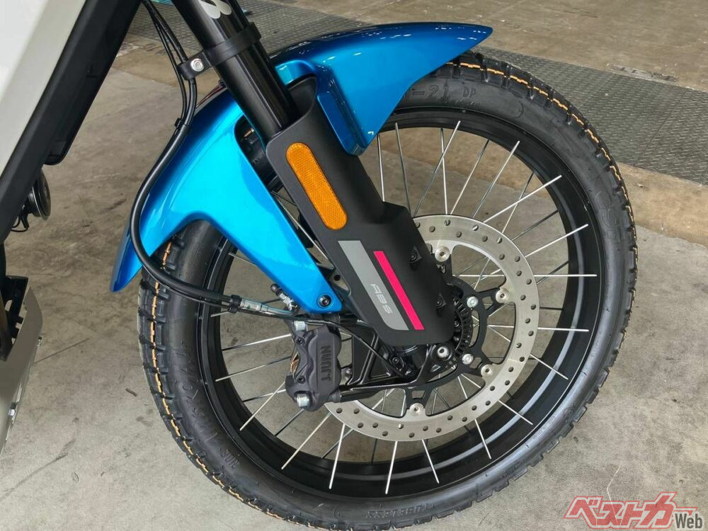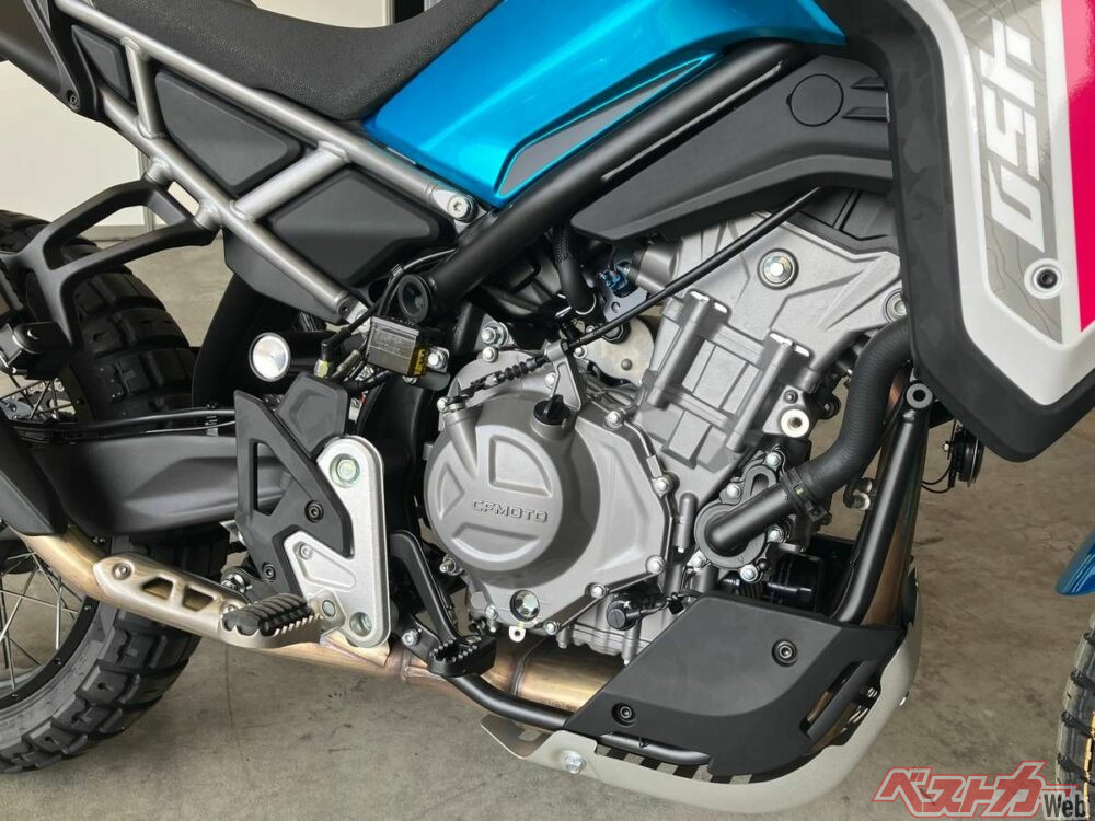 搭載するエンジンはDOHC水冷2気筒で、ボア×ストローク比は72mm×55.2mmとややショートストローク。これは同社が従来からラインナップしているオンロードモデル「450CL-C」などと同系統ながら、カムシャフトや吸排気システムをアドベンチャー向けに改良し、最高出力は31kw(42.1PS)/8500rpm、最大トルクは42N·m/6500rpmを発揮するトルクフルなものとなっている。フレームはクロームモリブデン製のトレリス、ホイールはフロント21インチ、リア18インチという、オフロード走行を重視した装備。スポークホイールながらチューブレス仕様な点は実用的だ。