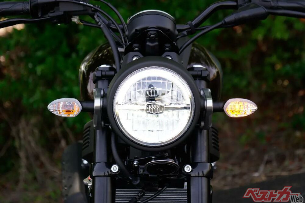 各部に丸型デザインを採用し、レトロな雰囲気をまとっているXSR125。コンパクトでシンプルな車体構成で車重は軽く収まり、取りまわし性も良好だ。