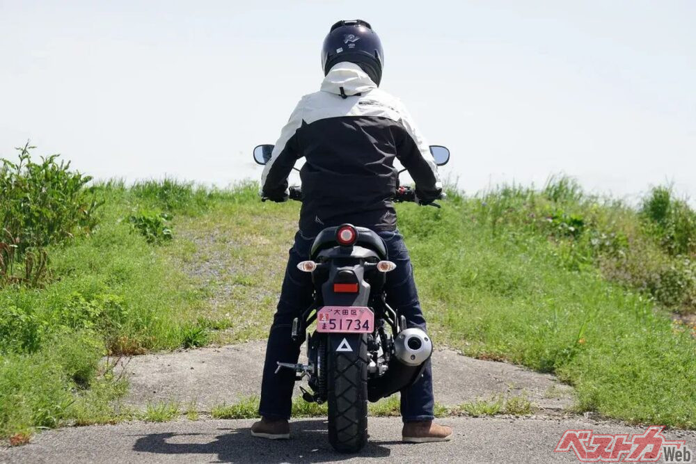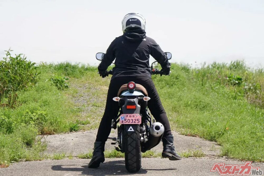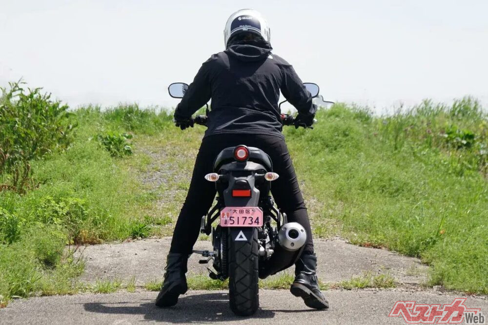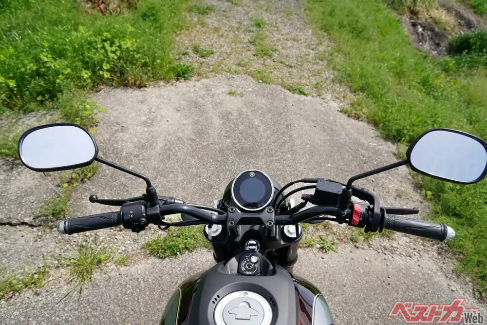 XSR125はアップハンドルを装備しているが、身長172cmの筆者でも、上半身が少し前傾するライディングポジションとなっている。しかし、この前傾でフロントに自然と荷重がかかってハンドリングが安定し、810mmとやや高めのシート高は視点の高さになっていて広い視界にも貢献し、ライディングのしやすさにもなっている。