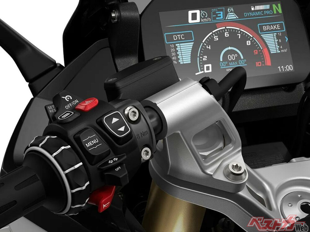 メーターにはフルカラーTFT液晶を採用。各種スイッチはハンドル左側に集約され、オートマチックシフトアシスタント(ASA)仕様はクラッチレバーを持たない。