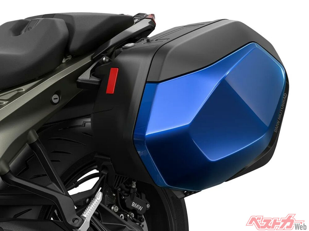 両サイドに取り付けられるパニアケースは電動タイプとなり、トップケースやタンクバッグと合わせて高い積載性を実現する。