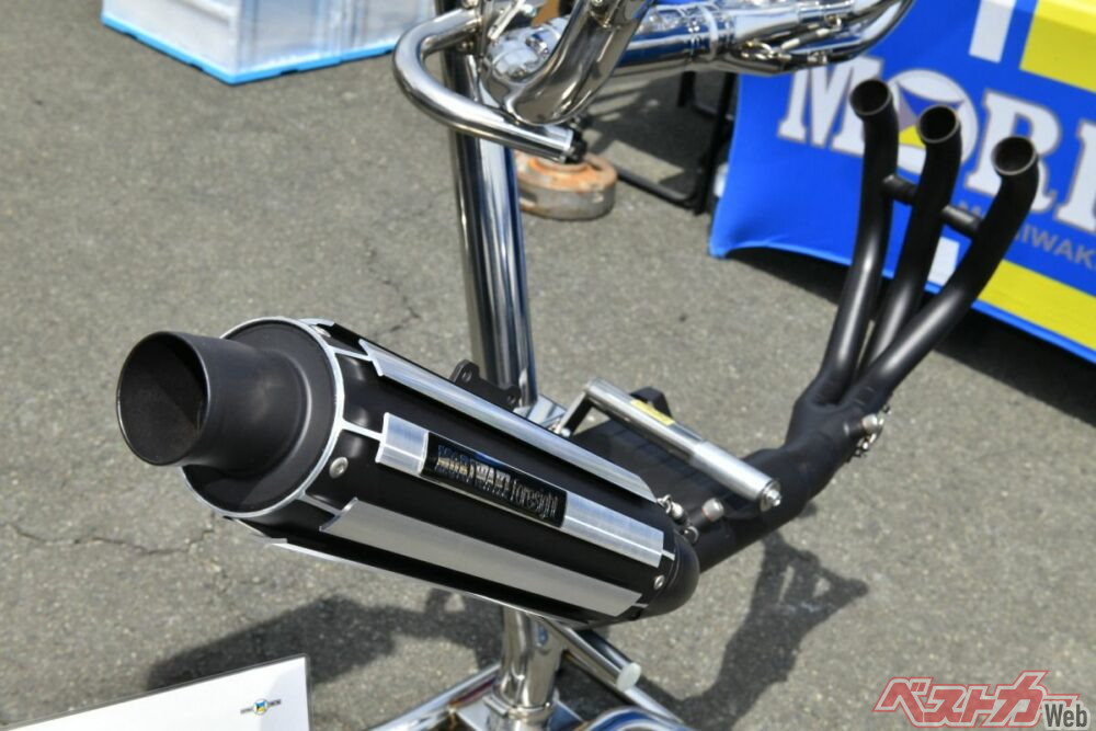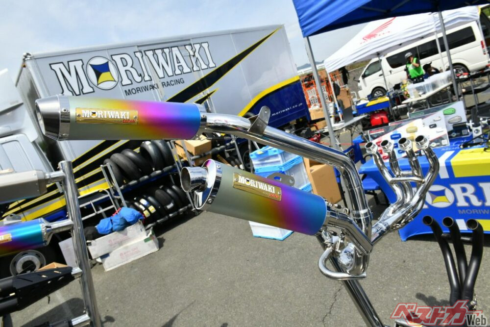 このほかモリワキブースでは、限定Tシャツやサイレンサー型クッションなどのファングッズが登場したほか、こちらもMCショーでお披露目されたばかりの新型エキゾースト、「FORESIGHT(フォーサイト)」と「ZERO GP」も展示された。フォーサイトはXSR900 GP用で、80年代に人気を誇ったフィン付きの独特の形状を再現。ZERO GPはCBR600RR用に復刻されたもので、独特のセンターアップ&サイドからの2本出しで今なお多くのファンを持つ。こちらは予約も開始されており、適合車種オーナーにとっては目が離せない一品だ。