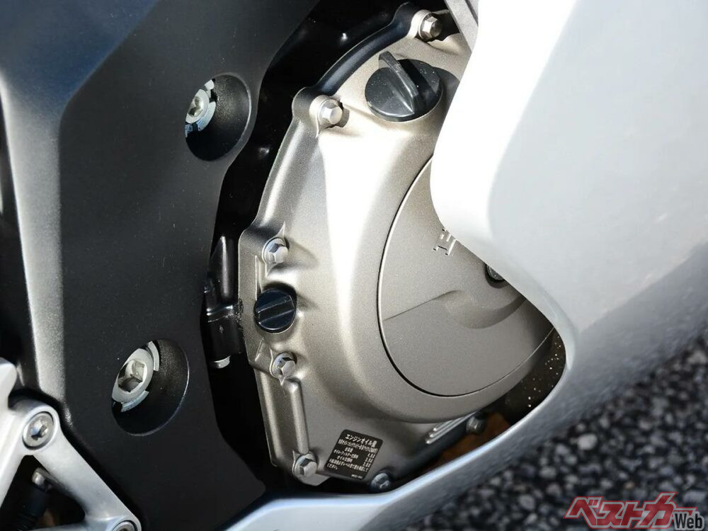 このエンジンのボア×ストロークは79×58mmで、シリンダー部にはオープンデッキ・シリンダーブロック一体鋳造技術を採用。シリンダースリーブおよびボアピッチを極限まで詰めるなどすることで軽量でコンパクトに仕上げられている。エンジン単体での重量はCBR1000Fと比較して約10kg軽量化され、スーパースポーツモデルとしては初めてデュアルシャフト・バランサー採用していた。