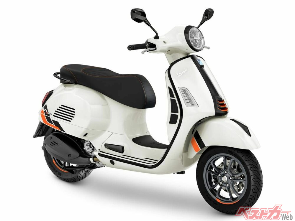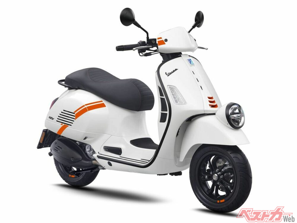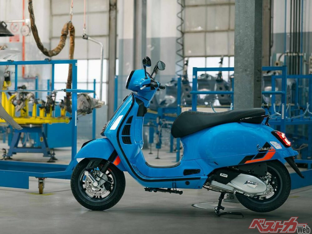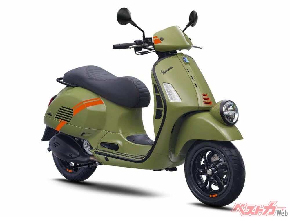 上級クラスとなるGTSシリーズにも、刷新されたカラーリングが登場。「GTS SuperSport 300」にはエネルギッシュなエクレッティコブルーを追加し、スポーティな印象をより強調した。GTVシリーズでは、エレガントなテナーチェグリーンとイノチェンテホワイトが用意され、クラシックと先進性を両立させるスタイルにまとめられている。