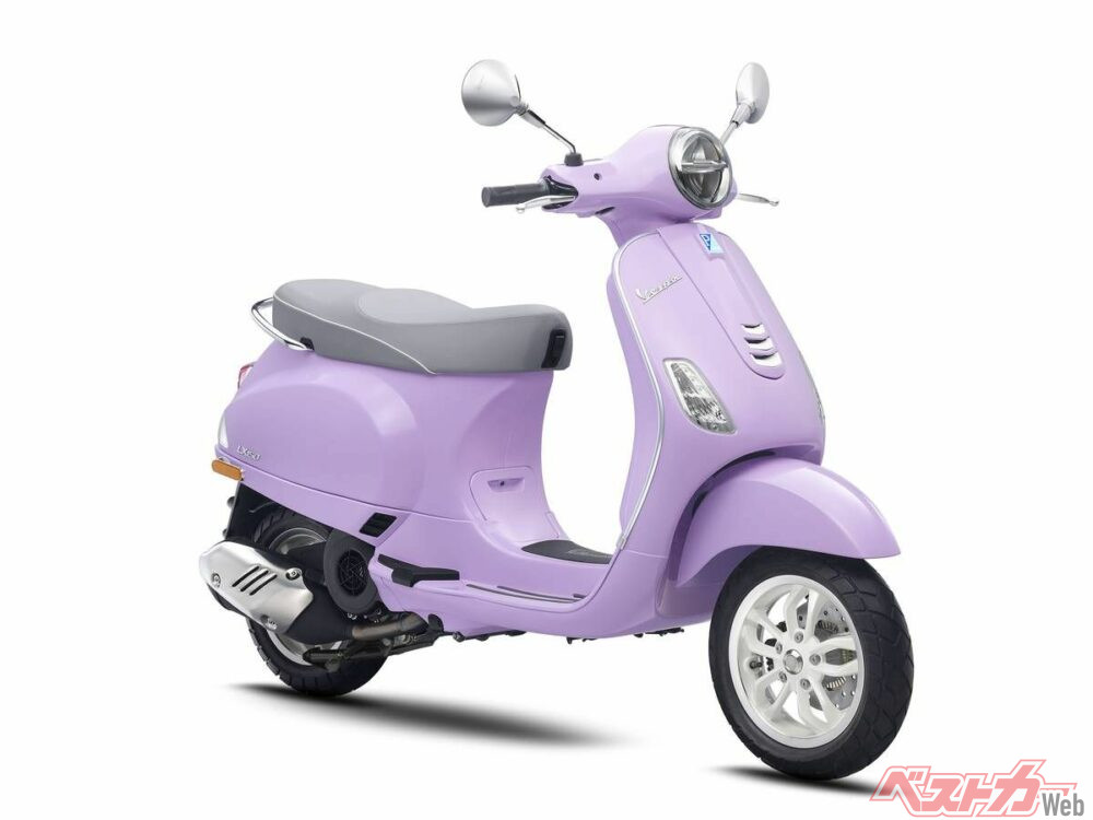定番モデル「LX 125」では、パステル調の新色「ユーフォリコライラック」が登場。ホワイトにダイヤモンドカット加工を施したホイールやグレーのシートなど、軽やかで上質な印象を与えるディテールが特徴となる。