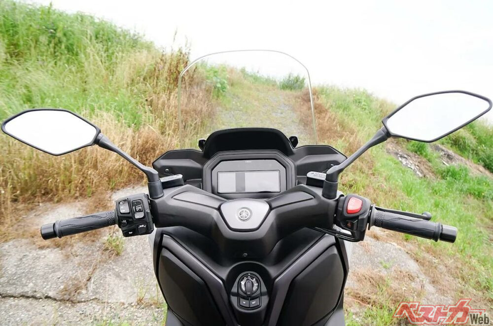 そうした実用域での扱いやすさとスポーティな走りの両立はXMAXらしさとなっていて、2025年モデルもしっかりと受け継いでいる。だが、2025年モデルで進化を感じたのはTFTディスプレイだ。スマホとの連携機能を持ち、Garmin社製ナビアプリ「Garmin StreetCross」を表示することができ、ライディング中にナビゲーション機能を利用でき、利便性が高い。さらに、そのTFTディスプレイの表示が明瞭で、視線移動が少なくても情報を目視しやすくなっている。ハンドルに電子デバイスを追加装備せずにナビゲーション機能を使用できるので、フロントまわりに軽快さが感じられ、雨天走行でもストレスを感じにくく、個人的にはかなりの高評価ポイントだ。軽快な走りを楽しめるXMAXはスポーツスクーターとしての人気が高かったが、2025年モデルではコミューターとしての快適性と利便性がしっかりと強化されていると思った。