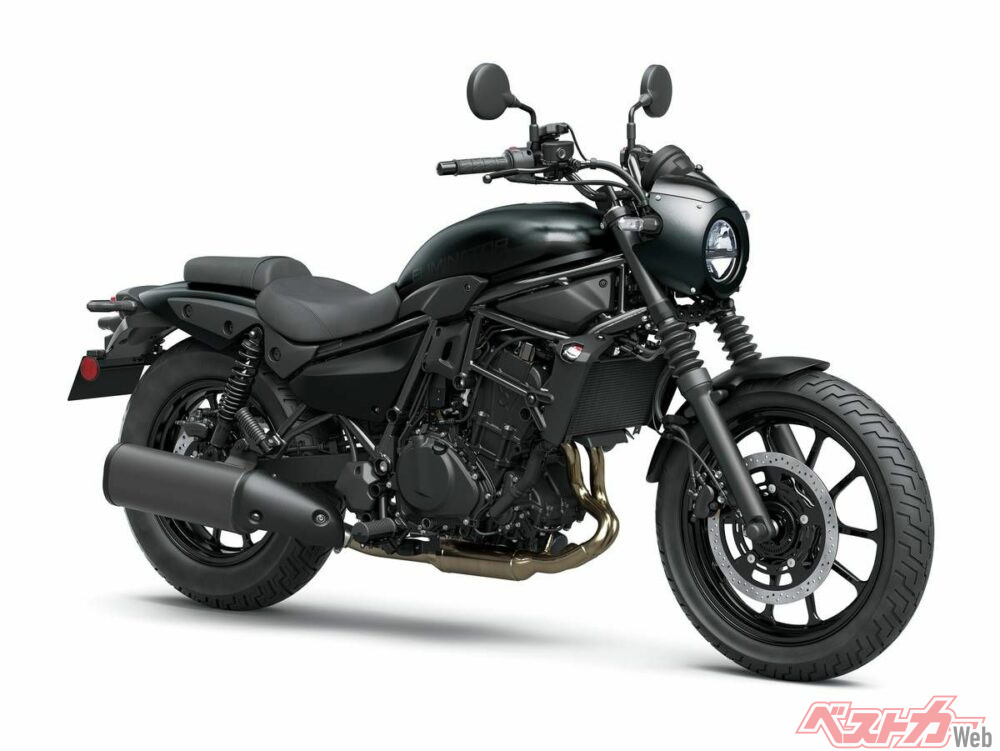 エリミネーターは2023年に発売された、排気量398ccのミドルクルーザー。80年代にカワサキからラインナップされていたスポーツクルーザーのネーミングを復活させたネオクラシックだが、搭載するエンジンはNinja400の水冷並列2気筒エンジンを活かした出力48PS/10,000rpmを発揮。パワフルな走行性能を発揮しつつも、735mmの低いシート高で足つきもよく、ゆったりとしたポジションで、どんなライダーでも不安感なく楽しめるモデルに位置付けられている。また400ccクラスでは少ないETC2.0車載器も搭載しており、ツーリングでの利便性も高い。