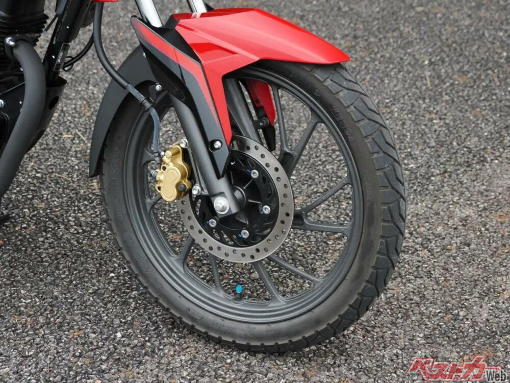 基本的にホイールが大径になればなるほどハンドリングは重くなるのだが、この「CBF125R」に関してはそのようなストレスは一切感じない。取り回しの際に「少しフロントが重めかな?」という感覚はあるのの気にするほどではなく、乗ってしまえば非常に扱いやすい。