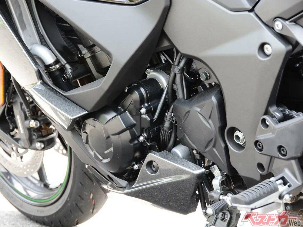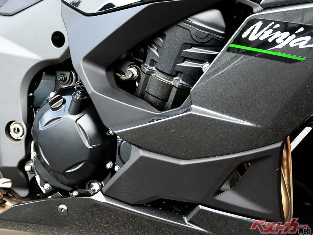 このエンジンに組み合わされるミッションは5速が1.238から1.217へ、6速が1.107から1.068へとロング化することで最適化されている。その他、アシスト&スリッパークラッチや1500rpmから使えるKQS(カワサキクイックシフター)、KTRC(カワサキトラクションコントロール)なども装備している。