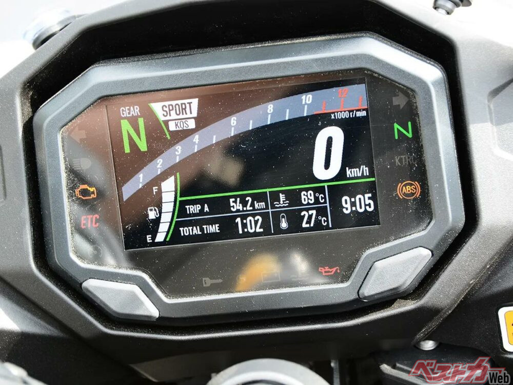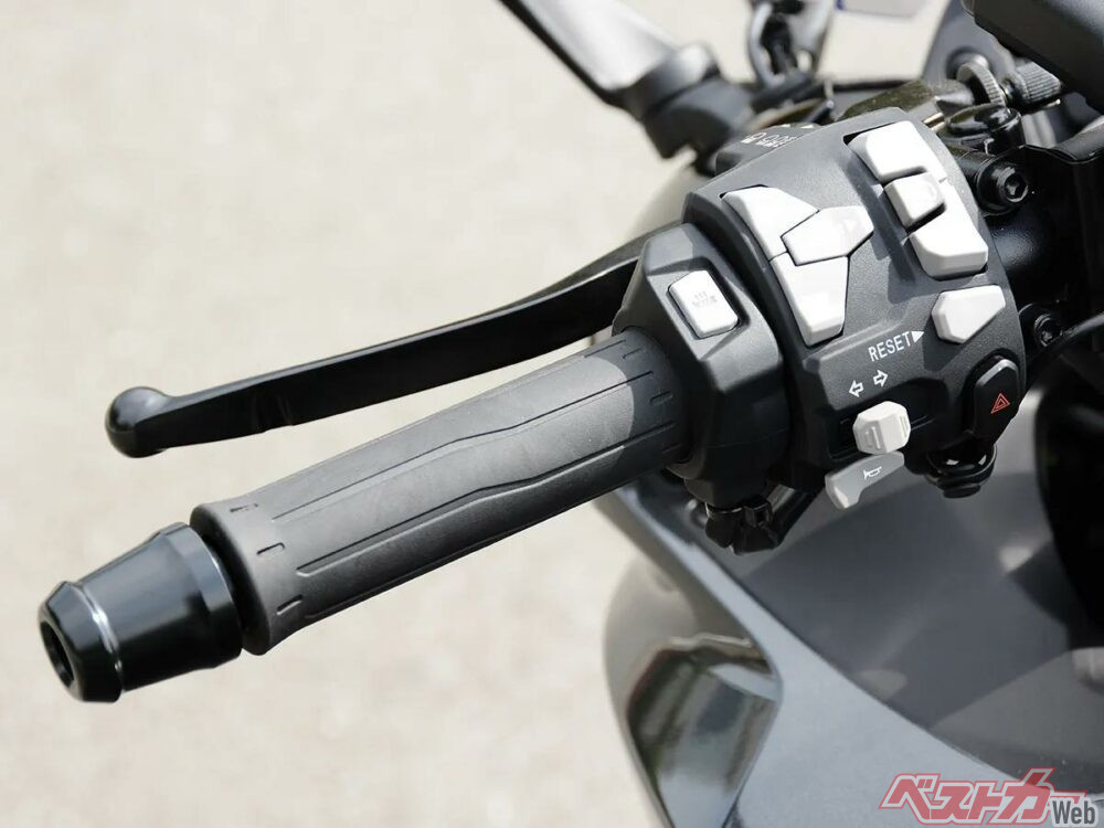 メーターには4.3インチのカラーTFT液晶を採用し、各種情報の表示はもちろん、スマートフォンとの連携などより快適なライディングに寄与する。また、USB-Cタイプのソケットがハンドル左側に装備されており、日本仕様にはドライブレコーダーやETC2.0などが標準装備されるなどユーテリティ面での充実が図られている。