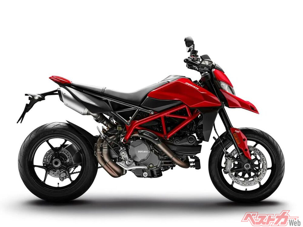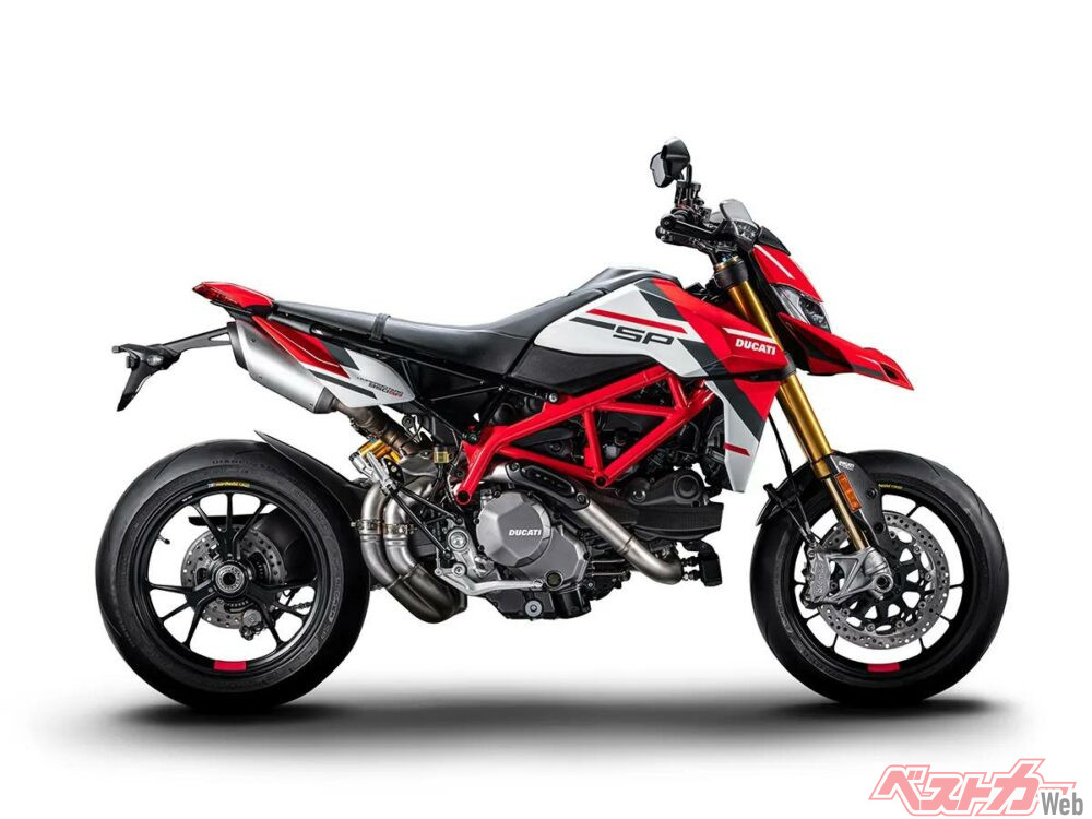 「ハイパーモタード950」シリーズは、セクションによって径を変えたチューブを使用した専用のスチール製トレリス・フレームと、同じく鋼管トレリス・フレームを採用したリア・サブフレームを組み合わせたシャシーに、最高出力114PSを発生する937ccドゥカティ・テスタストレッタ11° L型2気筒エンジンを組み合わせたスーパーモタードだ。ボッシュ製6軸慣性プラットフォームをベースにした最先端の電子制御を採用し、スポーツ、ツーリング、アーバンの3つのライディングモードによって走行条件に合わせて最適な走行性能を発揮することができる。メーターには4.3インチのTFTカラー液晶ディスプレイが採用され、ドゥカティ・マルチメディア・システム(DMS)がオプション設定されている。「ハイパーモタード950 RVE」はスポーティなキャラクターを強調する新しいグラフィティEVOカラーを纏い、ドゥカティクイックシフト(DQS)アップ/ダウンEVOを標準装備。「ハイパーモタード950 SP」には185mmのホイールトラベルを備えたオーリンズ製48mmフルアジャスタブルフォークと、175mmのホイールトラベルを備えたオーリンズ製フルアジャスタブルショック・アブソーバーが装着され、マルケジーニ製の3本Yスポークタイプ鍛造ホイールやよりフラットなデザインのシートなどが採用されている。