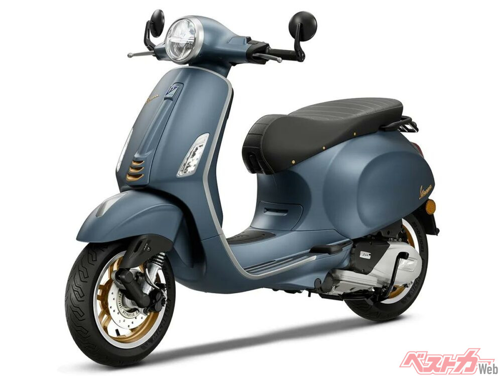 ベスパのプリマベーラシリーズとGTV310に、伝説的な工房である“Officina 8”の名を冠したスペシャルモデルが設定された。マットメタリック仕上げの深いインダストリアルブルーの限定カラーでペイントされ、工房のスタッフが身につけていたピンバッジをモチーフにした立体的なプレートなどの特別装備が与えられている。日本導入については未発表だ。
