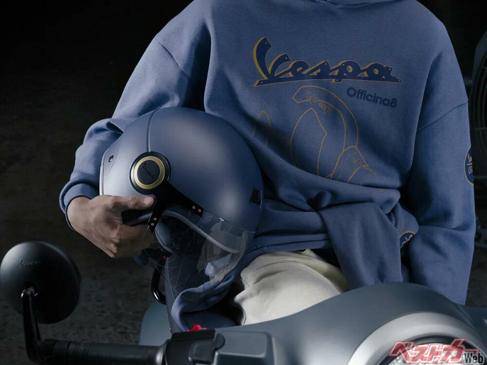 すべてのベスパ Officina 8には、このスペシャルエディションのカラーを彷彿とさせるブリキ製のエレガントなウェルカムキットが付属しており、その中には“Officina 8”の歴史を辿るオーナーズブックが収められている。また、バイクと同色で“Officina 8”のロゴがあしらわれたトップボックスや、マット仕上げのインダストリアルブルーを基調としたジェットヘルメット、テクニカルストレッチニット素材を使用したグローブといったアクセサリーやアパレルなども用意されている。