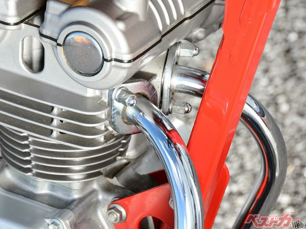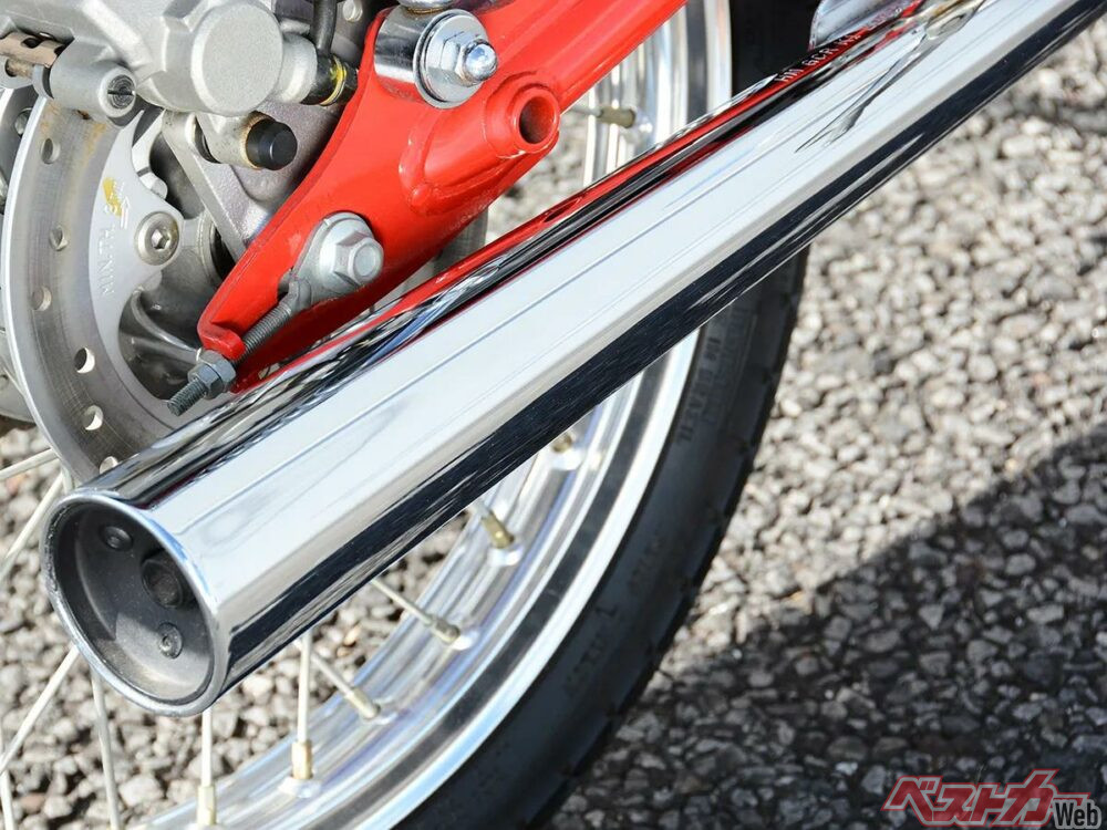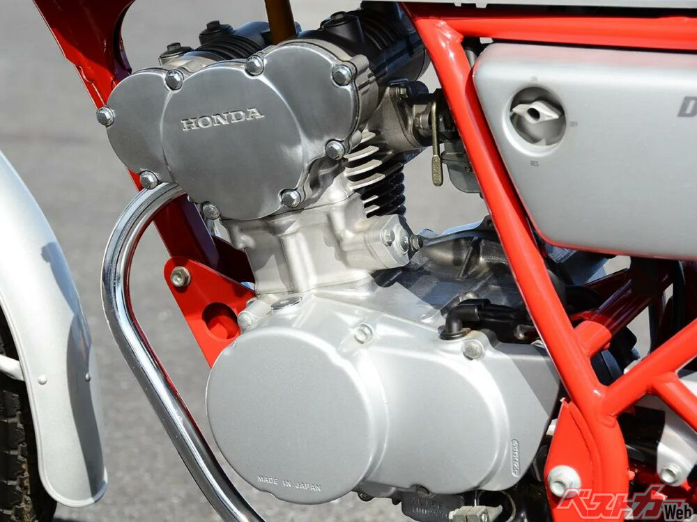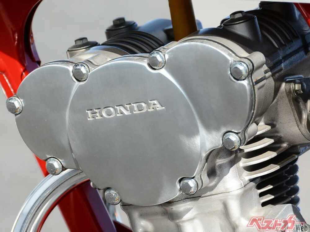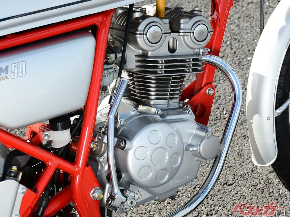 搭載されるパワーユニットは専用に新開発されたものであり、DREAM50以外のモデルに積まれることも無かった。ボア×ストロークは40×39.6mmというほぼスクエアな設定で、インテーク径15mm、エキゾースト径12mmのバルブを各2つ持つ4バルブだ。カムシャフトの駆動にはチェーンが使われておりCR110のカムギアトレイン方式は踏襲されなかったが、最高出力5.6PS/10500rpmという高回転エンジンに仕立てられ、ミッションはクロスレシオの5速が組み込まれる。エキゾーストシステムは左右どちら側から見てもスリムでスタイリッシュなマシンイメージとするため、クロームメッキを施したツインエキゾーストおよびツインメガホンマフラーを採用している。