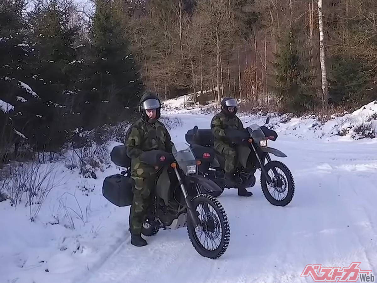 スウェーデンといえば、高性能オフロードマシンで知られるハスクバーナの故郷。実際、1980年から採用されていたハスクバーナ・MC258が従来は偵察用オートバイとして活躍していたが、これは70年代に設計された2サイクル空冷単気筒マシン。2003年からは398ccの