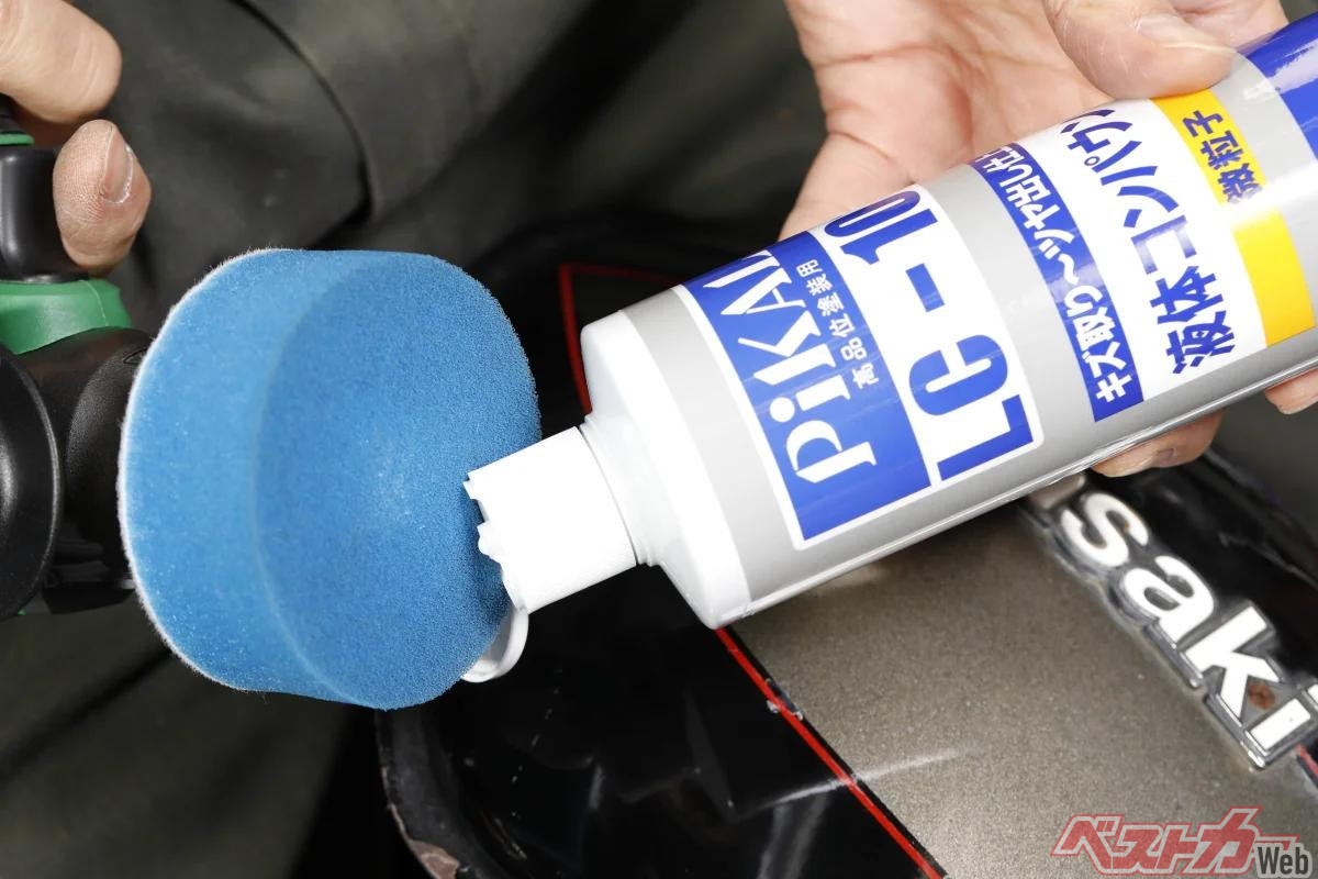 つまり粗目のコンパウンドで大きめのキズを付けて、そのキズを細目、極細目で徐々に目立たなくしていくわけです。どこまで粒度を細かくしていっても、キズを付けているのなら光沢は出ないのでは? と思う人もいるかもしれませんが、ここで紹介するコンパウンドのLC-303の番手目安は#8000と超細かいため、鏡面仕上げが可能です。
