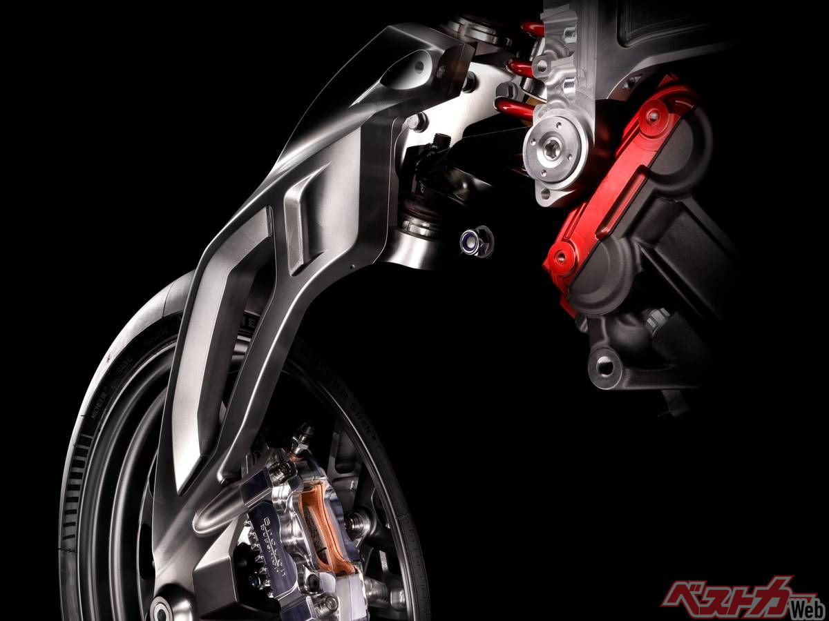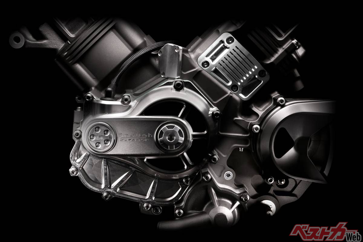 搭載エンジンは、同社のオリジナルとなる997cc・88度Vツイン水冷DOHCエンジンでターボチャージャーを搭載。最高出力は130馬力に及び、CNCアルミ合金によるエンジンブロック、ダブルウィッシュボーン式フロントフォーク、リアスイングアーム、ホイールに至るまで、ほぼすべての構造が一貫した削り出しパーツで構成されている。