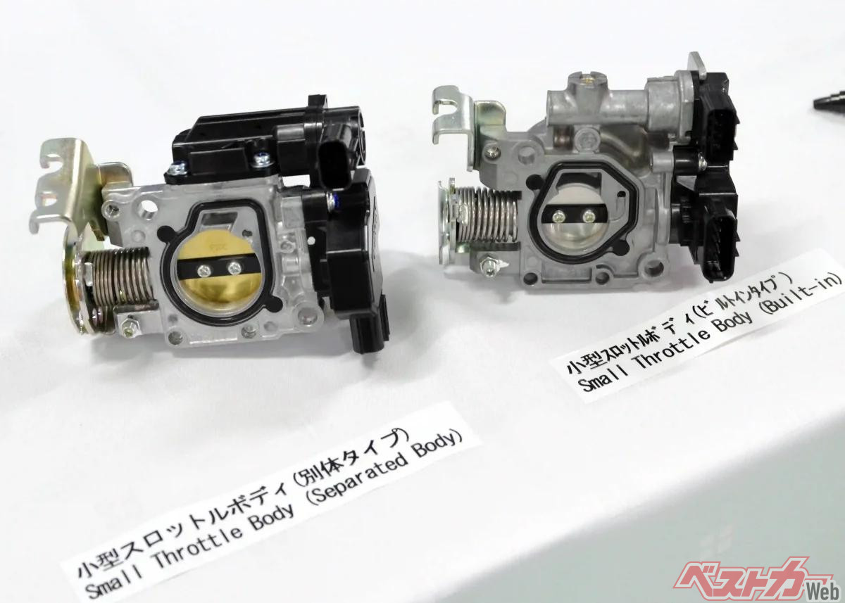 世界最小サイズながら応答性はスーパースポーツ並みという単気筒用の電制スロットルボディ。2027年の市販モデル搭載を予定している。