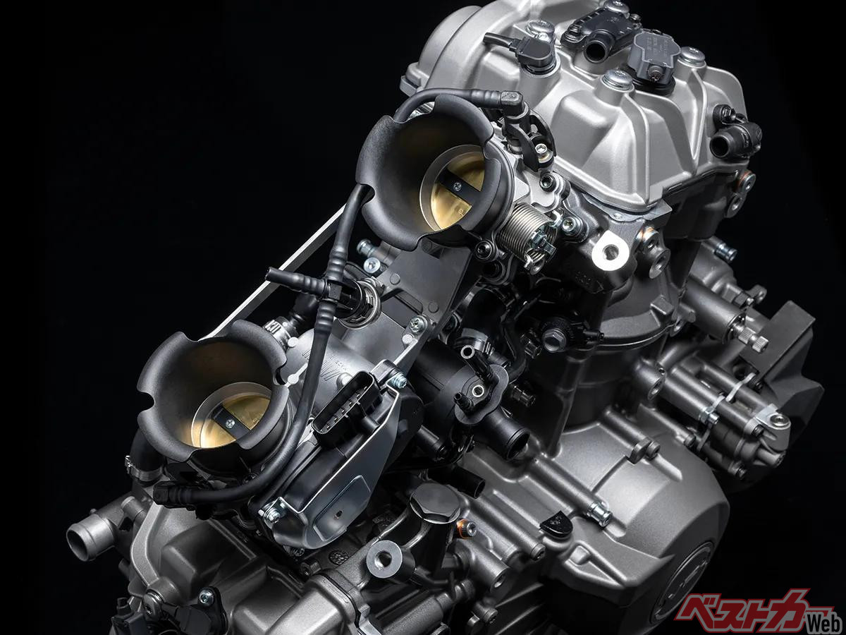 最高出力/最大トルク:88kW(120ps)@10,750rpm(レーシング・エグゾースト装着時は126ps)/最大トルク:93.3Nm@8,250rpm