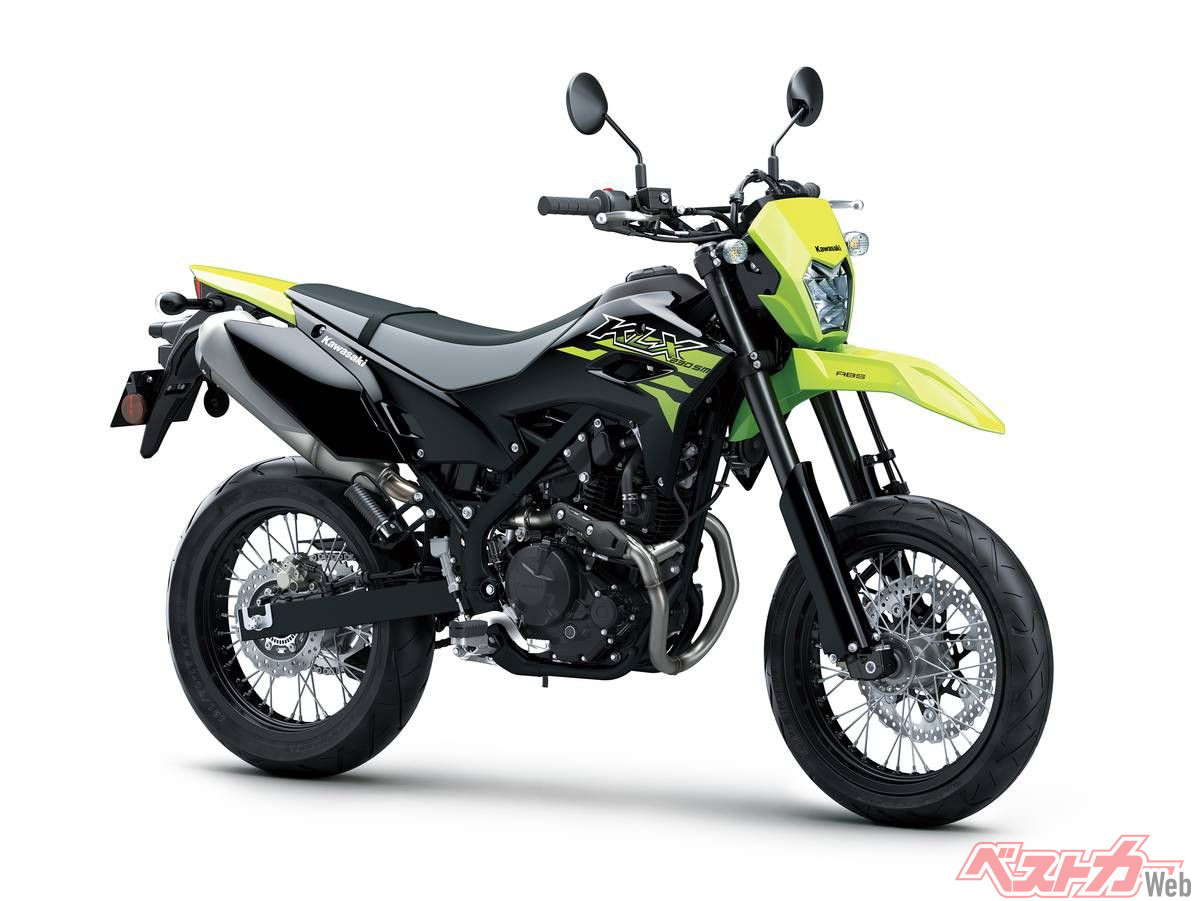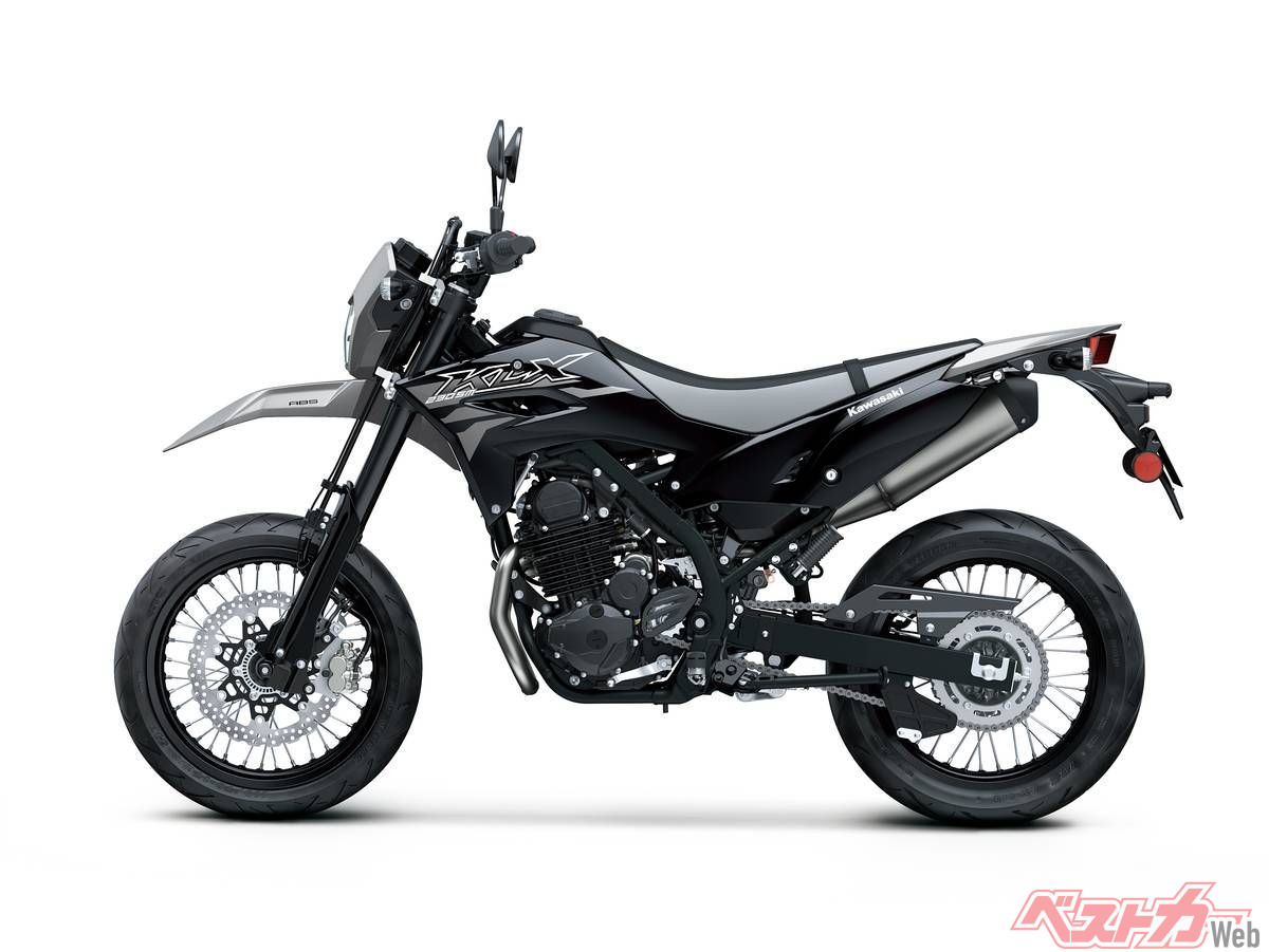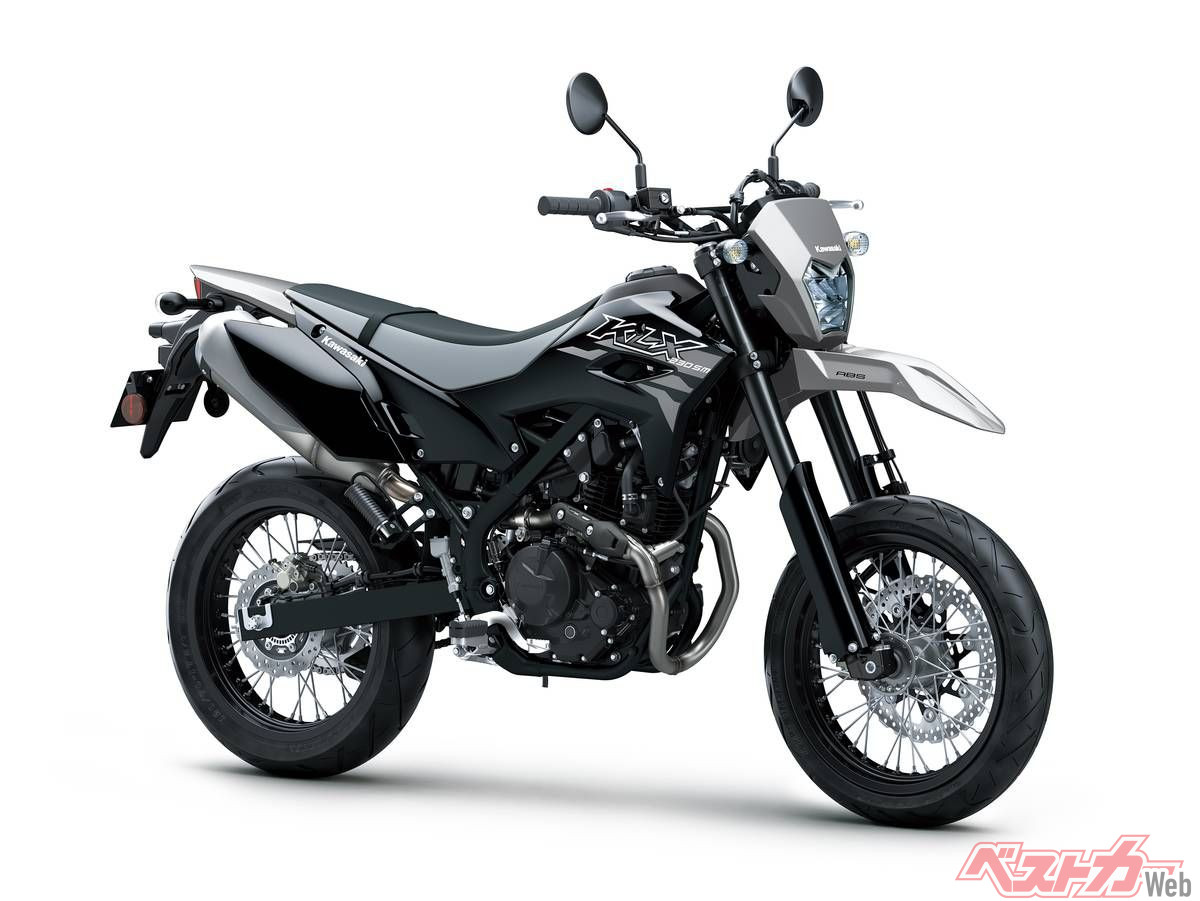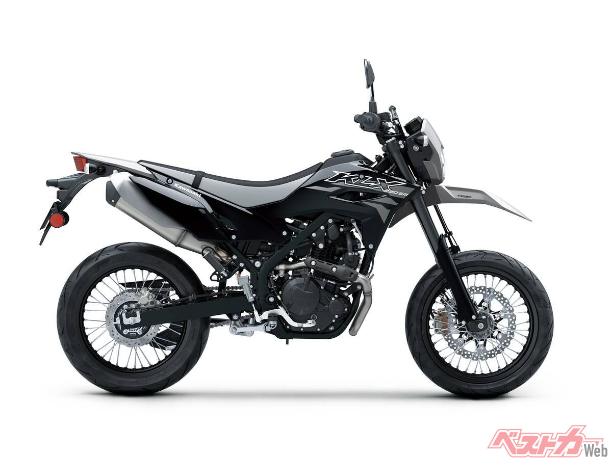 さらに同一車体をベースにスーパーモタードとした「KLX230SM」は、足回りを前後17インチホイール、倒立フォークの採用などでオンロードでの戦闘力を強化。こちらも現行にはライバル機のないカテゴリーであり、2023年に一時旧モデルが導入されていたが、その後は空白となっており、国内モタードファンからは注目を集めている。