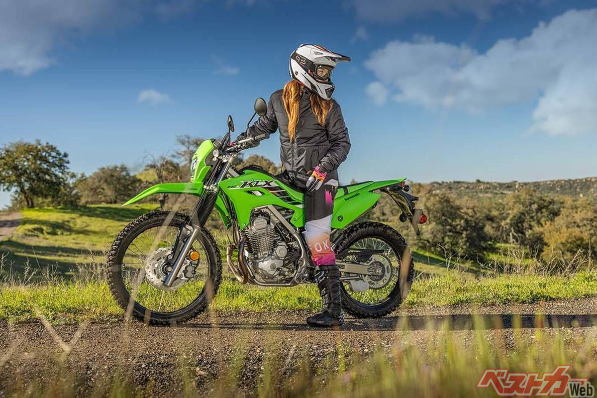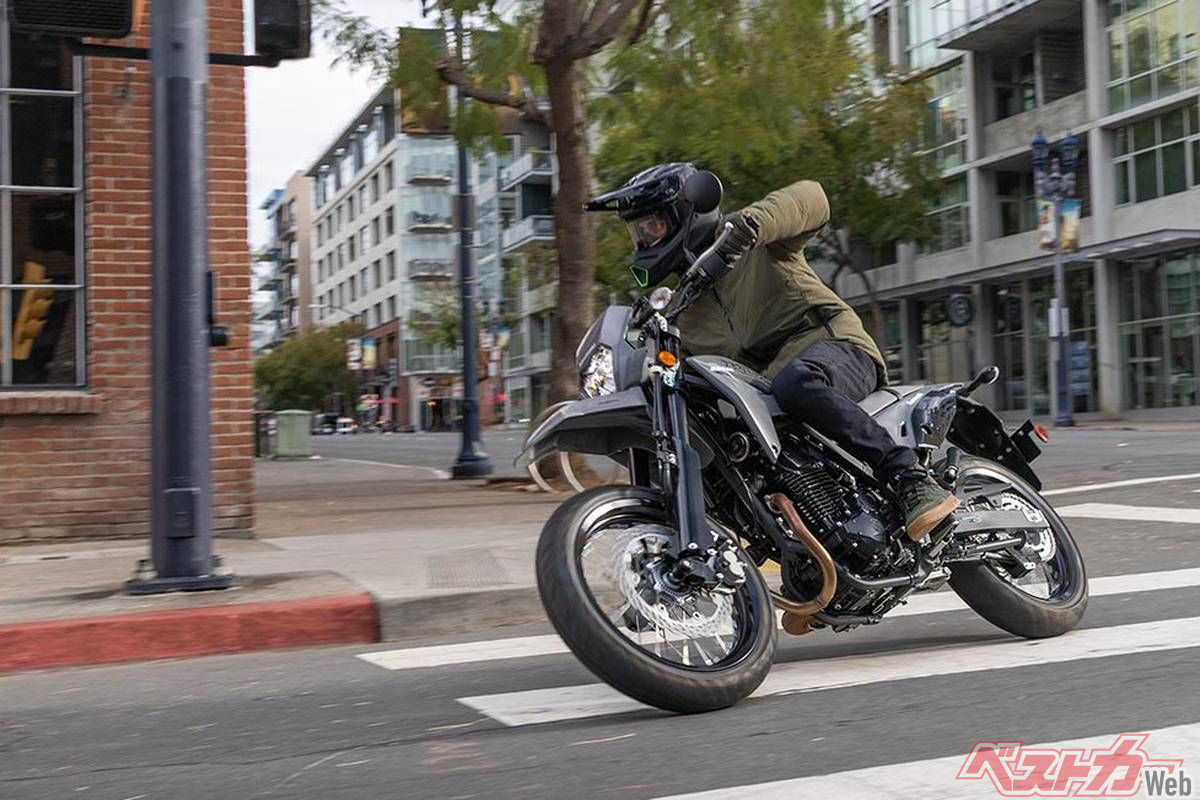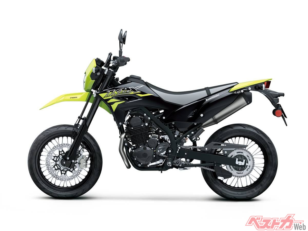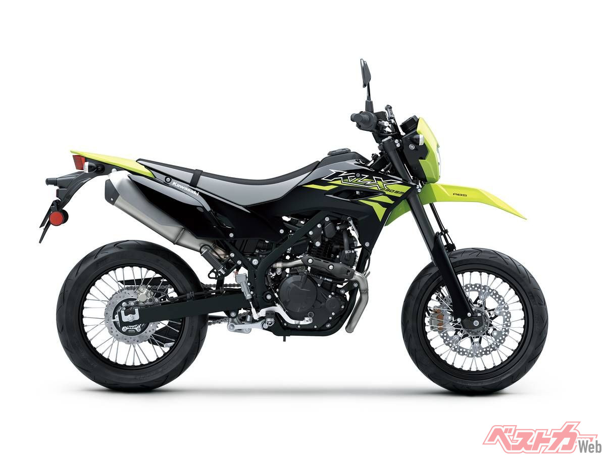 さらに同一車体をベースにスーパーモタードとした「KLX230SM」は、足回りを前後17インチホイール、倒立フォークの採用などでオンロードでの戦闘力を強化。こちらも現行にはライバル機のないカテゴリーであり、2023年に一時旧モデルが導入されていたが、その後は空白となっており、国内モタードファンからは注目を集めている。