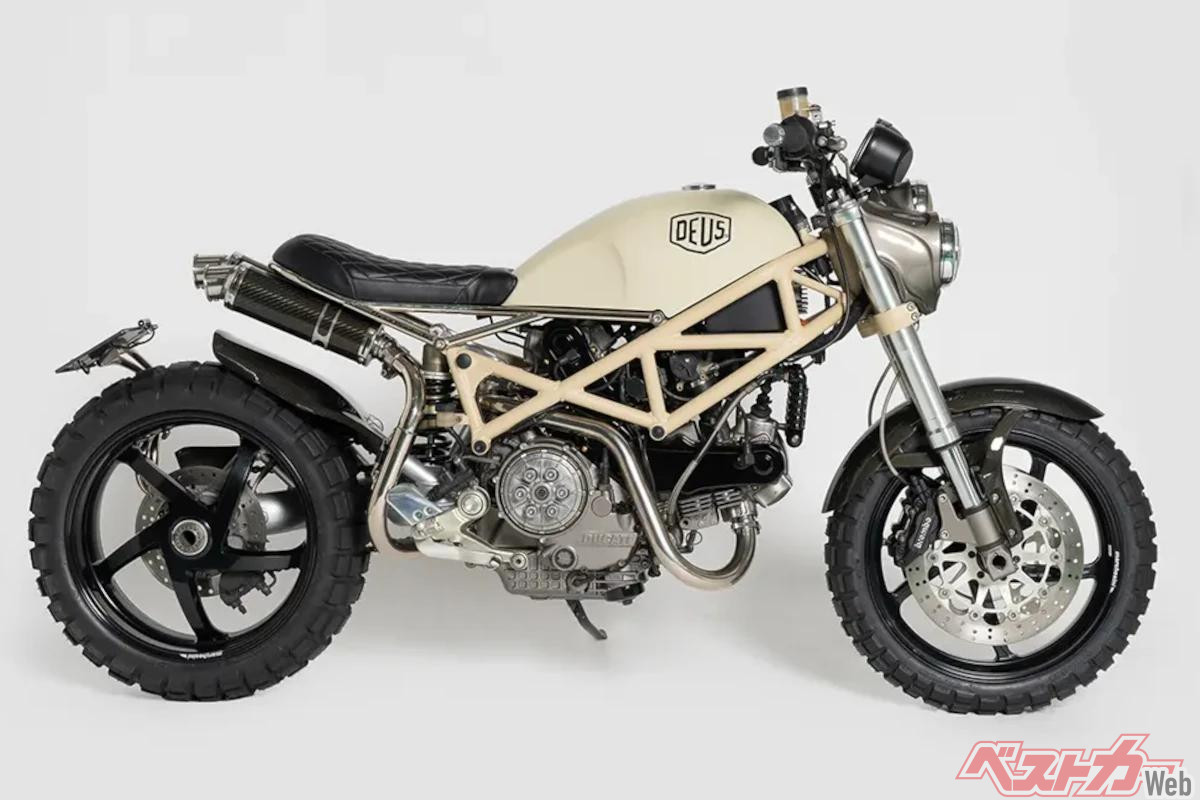 デウス エクス マキナ原宿店にて、2025年8月30日(土)までカスタムマシン3台が展示されている。今回は第一弾としてドゥカティ「Monster S2R1000」をベースとした「ARGUS(アルゴス)」をピックアップしたい。