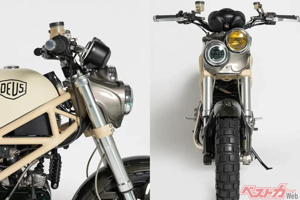 異形の2眼ヘッドライトを持つスクランブラー「Monster」!? デウス エクス マキナより唯一無二のカスタムバイク「ARGUS」が原宿店に展示【画像ギャラリー】