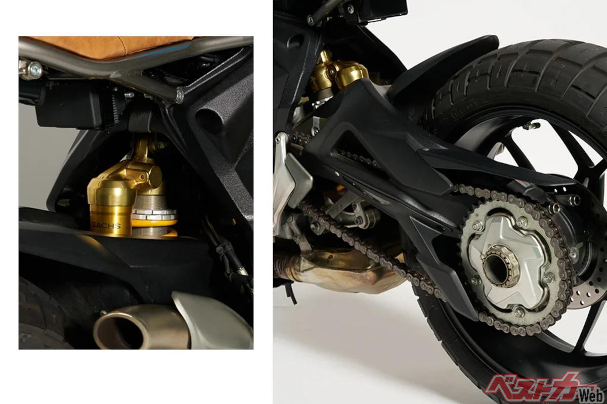 もちろん見た目だけではなく、乗り味にもこだわりが。足まわり・車高・キャスター角は生かしつつ、低重心化を実現。軽量コンパクトなボディと、より高まったパワーウェイトレシオがライディングの楽しさを引き立てることに成功した。近年のバイクは非常に高性能。そのため、手を加える側にも相応のスキルと緊張感が求められる。カスタムとはいえ、「逃げずに仕上げる」というのがデウスの哲学なのだとか。そんな哲学がカタチとなったのだ。