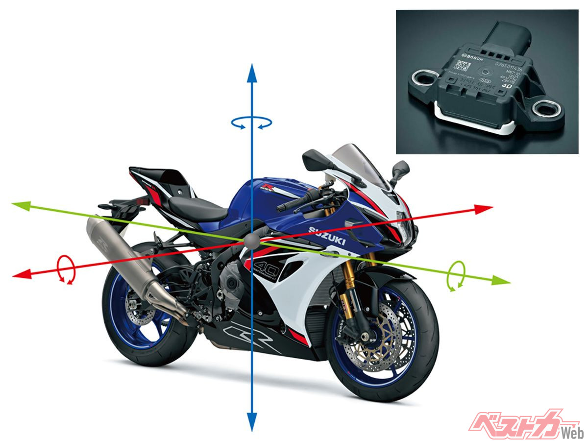 車体ではむしろ、電子制御システムの熟成が特筆点だろう。従来型はIMU(慣性計測ユニット)を備えたトラクションコントロールに「モーショントラックTCS」という名称を与えていたが、新型ではこれを「スズキトラクションコントロールシステム(STCS)」と改名。これにリフトリミッター(=ウィリー制御)、ロールトルクコントロール(=バンク角や速度に応じてエンジン出力を制御)を加えた3つの駆動力制御システムを「スマートTLRコントロール」という新名称で括って統合制御す