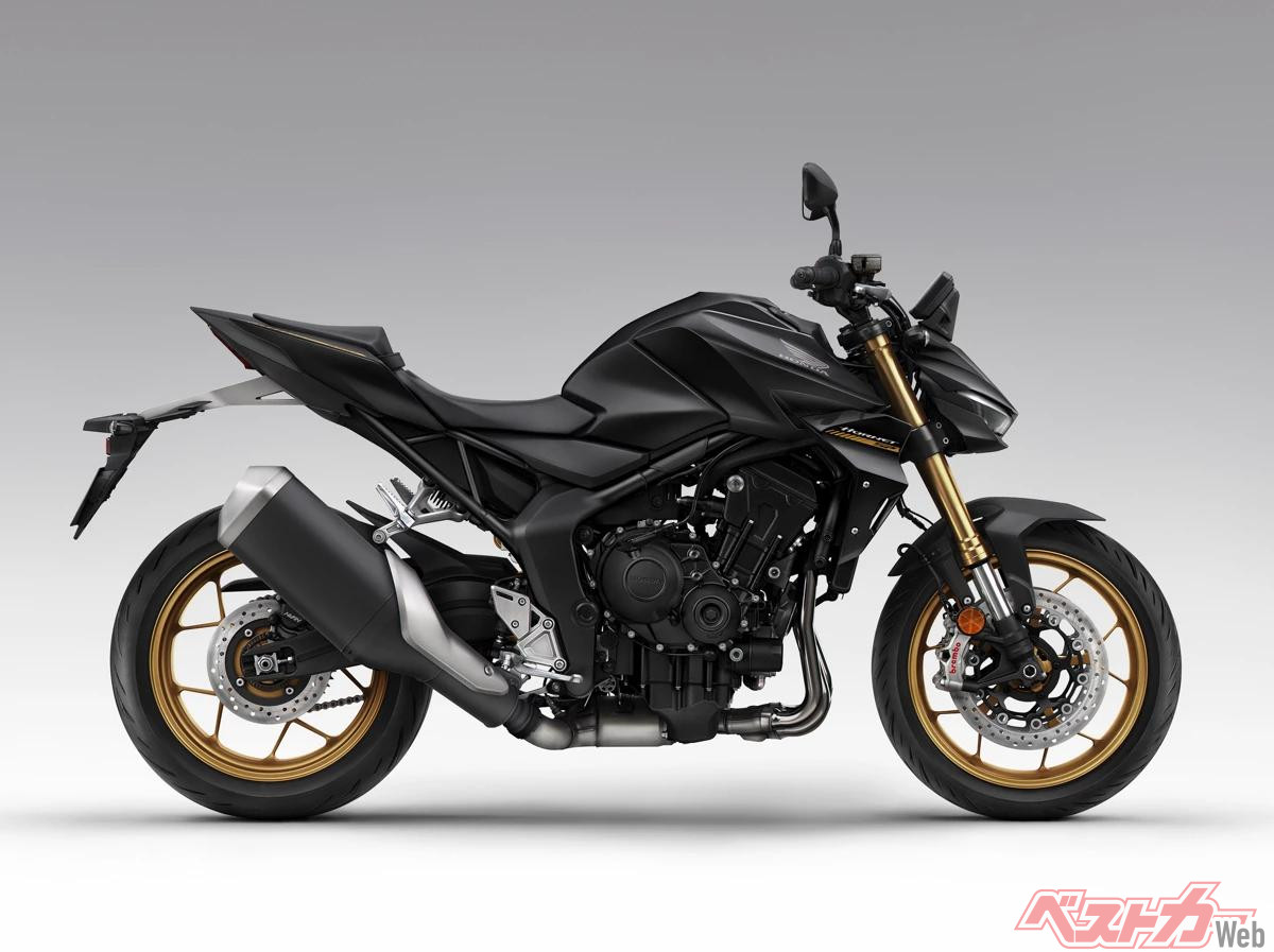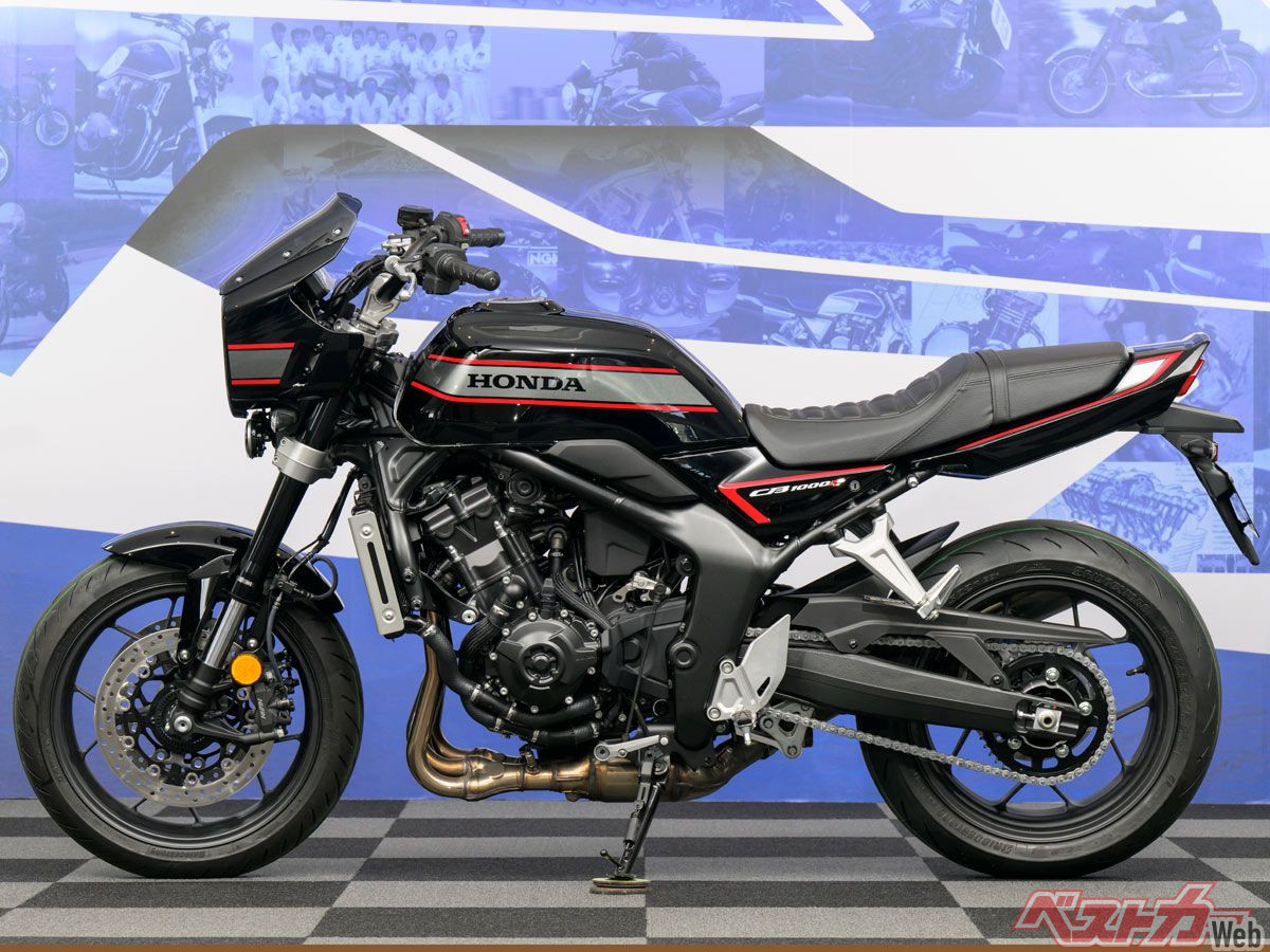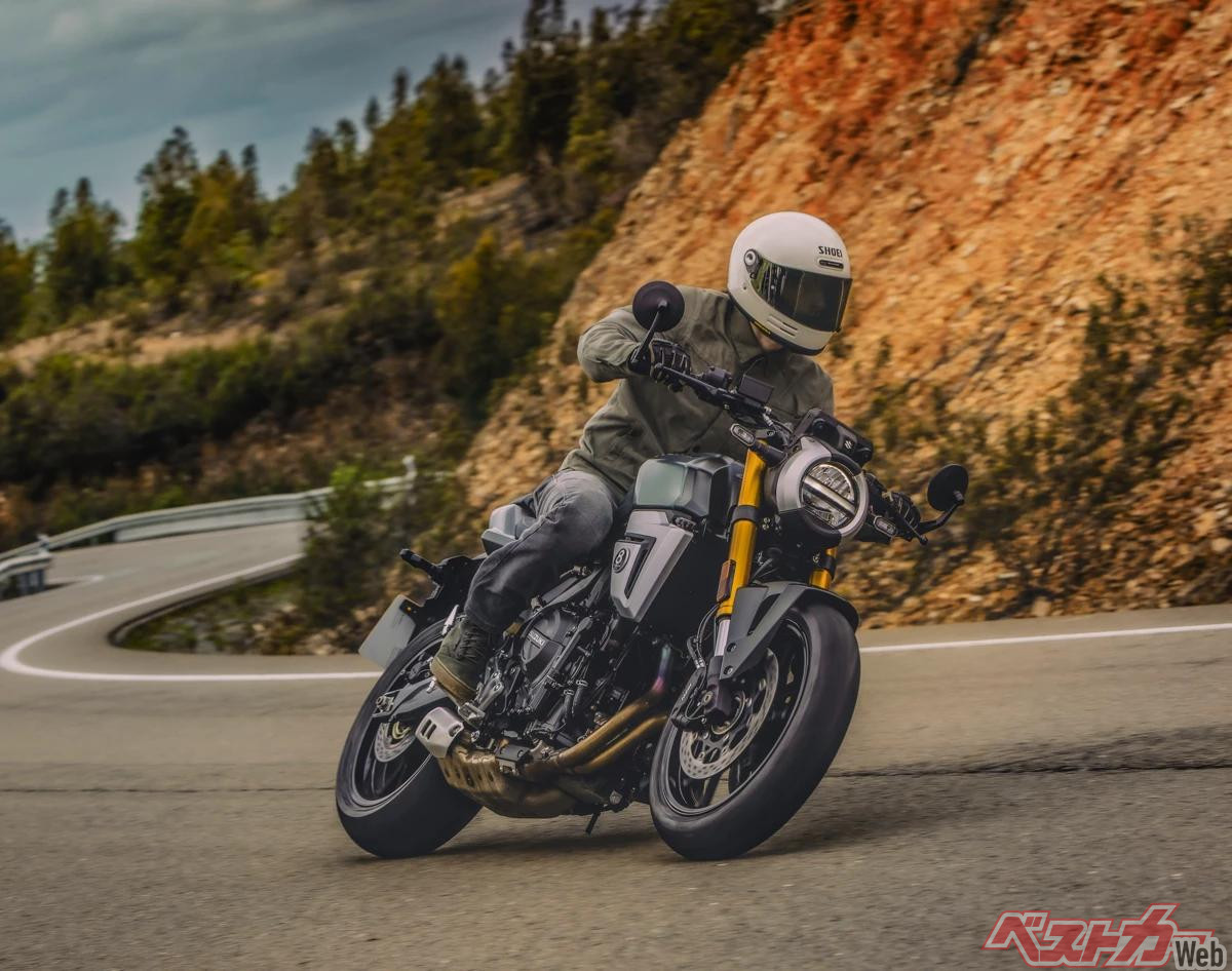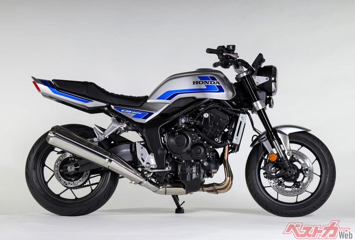 また、足まわりは、Y字5本スポークの前後17インチホイールや、フロント120/70ZR17とリア180/55ZR17のタイヤサイズなど、CB1000ホーネットと同様のパーツを採用。ほかにも、レトロなデザインと機能面での充実度を両立した丸目一灯のヘッドライトを装備するほか、派生機種の「SEコンセプト」にはビキニカウルも搭載し、よりスタイリッシュな雰囲気も醸し出します。