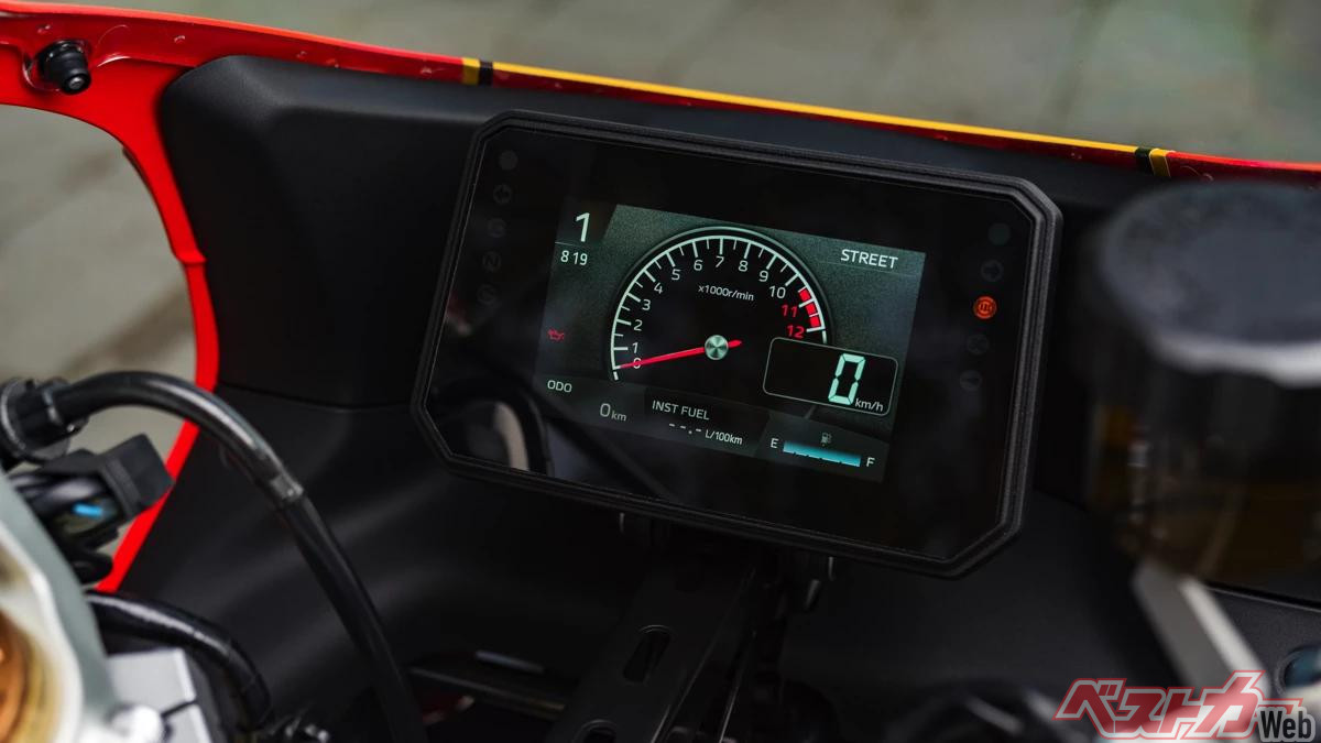 ほかにも、メーターに視認性を配慮した5インチTFTディスプレイを採用。表示パターンは、専用のアナログ風タコメーターを含む4種から選択可能です。さらに専用アプリ「Y-connect(Yamaha Motorcycle Connect)」をインストールしたスマートフォンとバイクを接続する機能も装備。電話やメールの着信通知など、さまざまな情報や画像をメーターに表示できるなど、スマホと連携した多様な機能を使うこともできます。