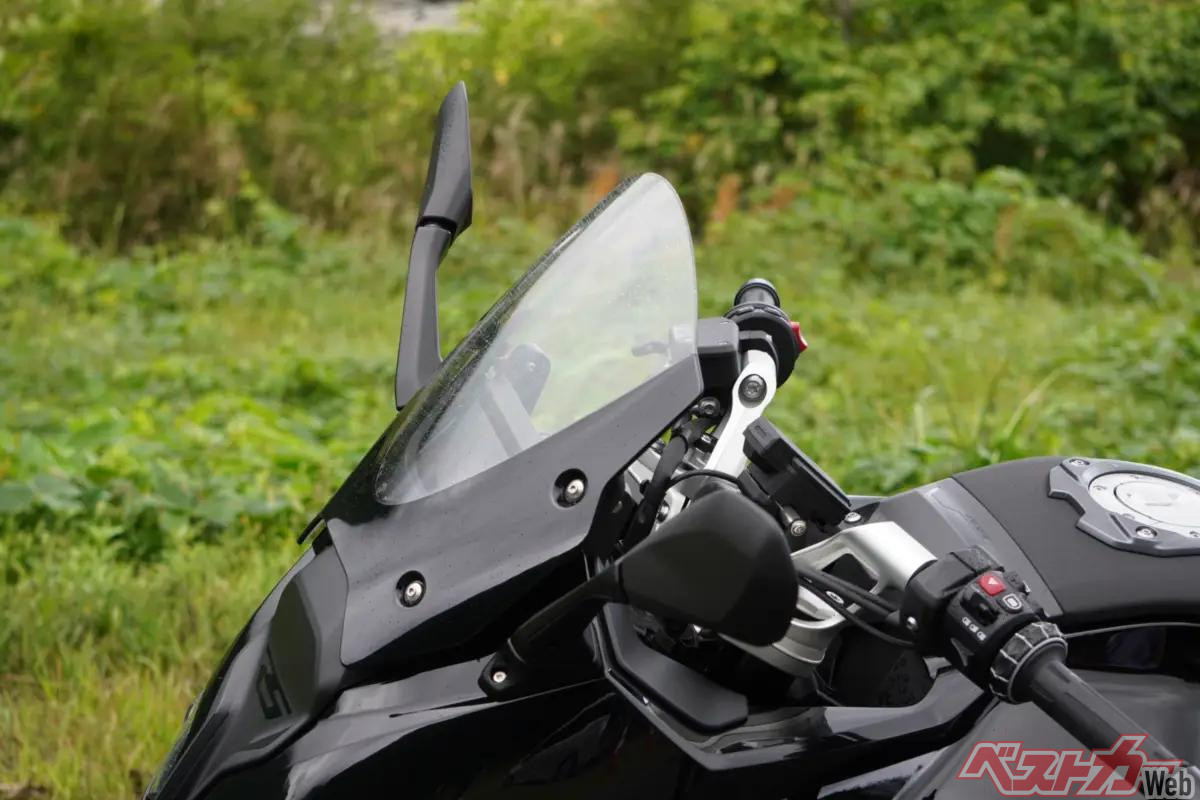 スクリーン位置を手動で2段階調整が可能であり、ロングツーリング時などに走行風を和らげることも可能。峠では鋭い走りが楽しめつつも、ロングツーリング時には快適性も確保している点が魅力となる。いわゆるスポーツとツーリングの異なる顔を併せ持つ“二刀流”といえるだろう。