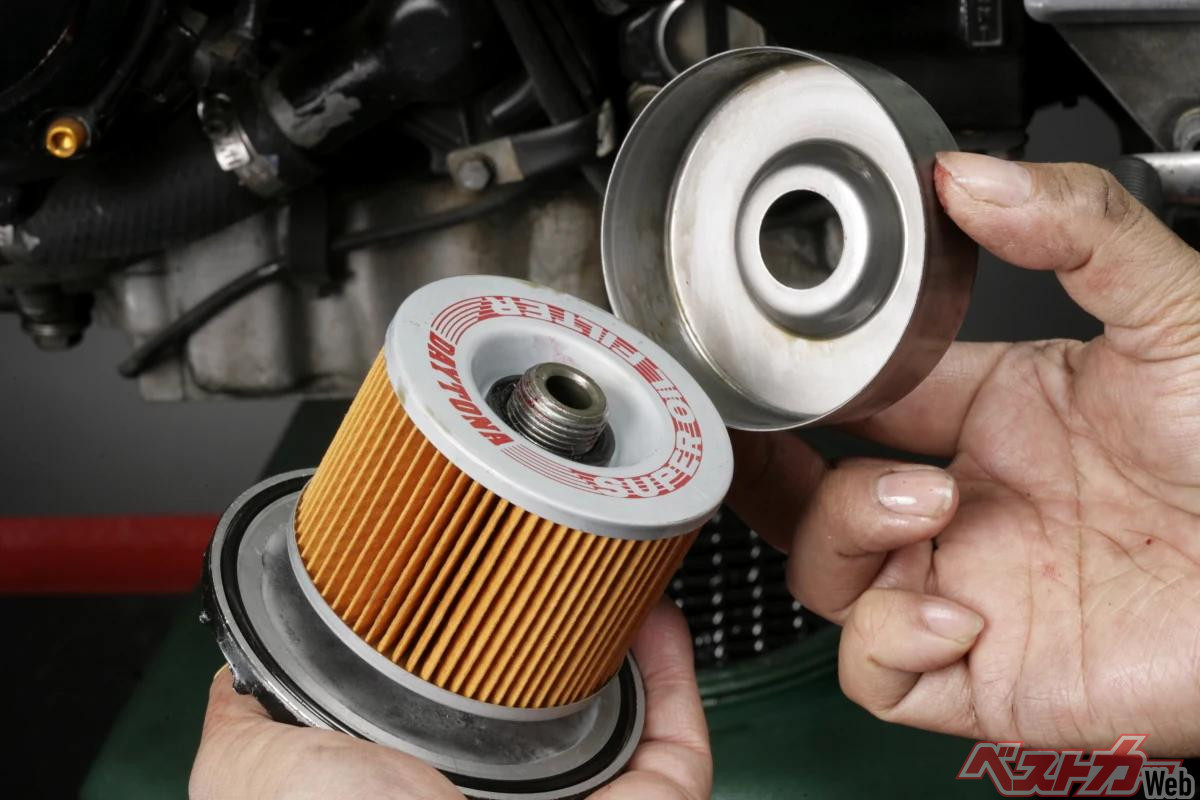 特にセンターボルト根元とカバー外周のOリングはオイル滲みや漏れを防ぐ重要な部品なので、エレメント交換の際には必ず新品に交換しましょう。