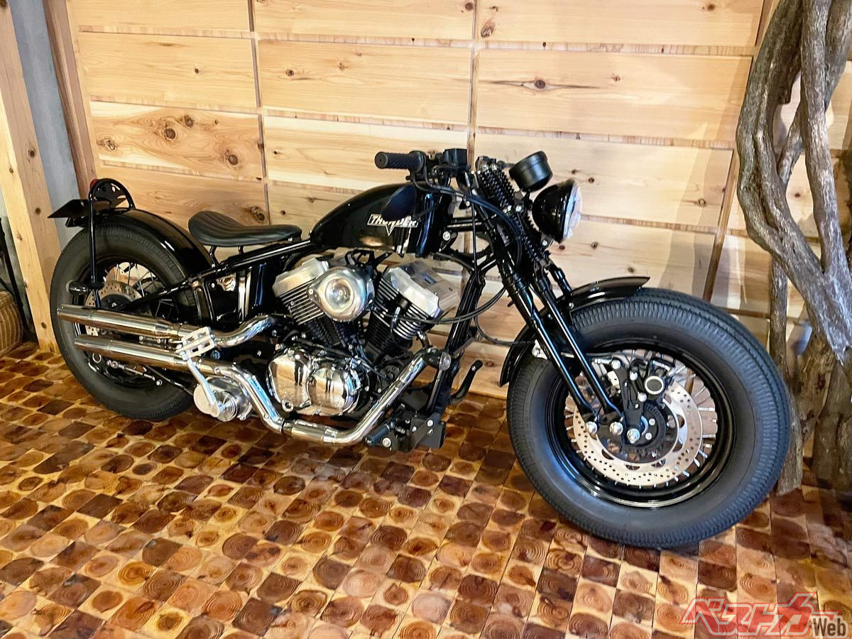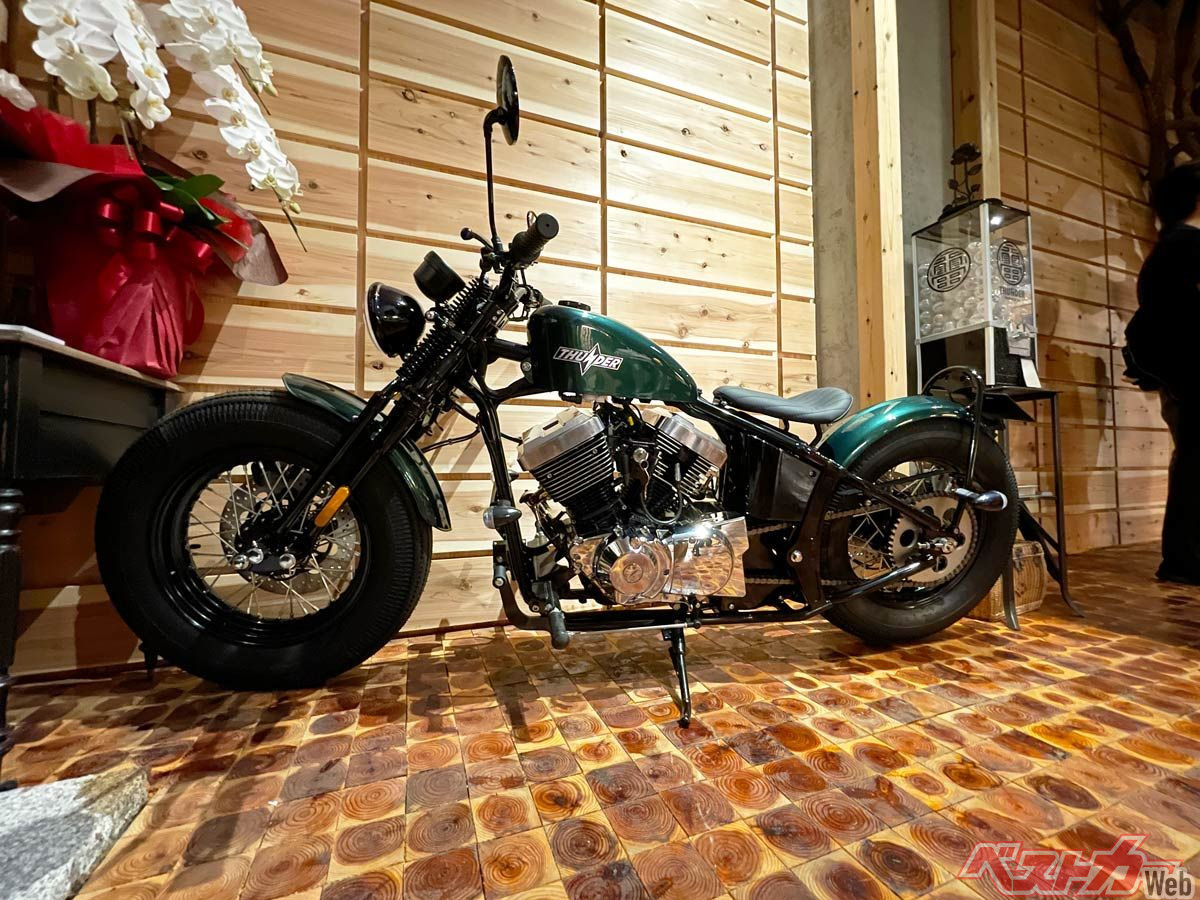 サンダーモーターサイクルズは、ハーレーなどのカスタムビルダーとして知られる車坂下(くるまざかした)モトサイクル の野呂裕二さんが、中国のカスタムビルダーとタッグを組んで2021年に立ち上げたブランド。同社のオリジナルモデル「サンダー250」は、日本車を源流とする空冷Vツインをスプリンガーフォーク&リジッドフレームの車体に搭載しており、軽二輪とは思えないロー&ロングの本格的ボバースタイルが特徴だ。