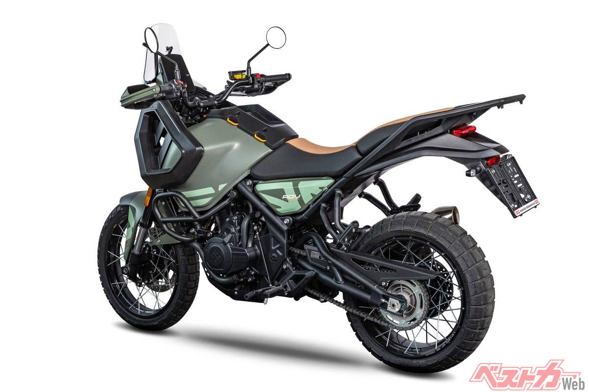 エンジンはネイキッドスポーツの「CROSSFIRE 500」を踏襲した水冷並列2気筒486ccを採用し、最高出力47.6PS/8,500rpm、最大トルク43Nm/6,750rpmを発揮。フレームや足回りは専用の新設計だ。装備面では、電子制御をあえて搭載せず「マシンを操る楽しさを重視」するという。燃料タンクは16Lで航続距離は約380km。シート高は839mmとアドベンチャーモデルとしては低めに設定され、長距離でも疲れにくいクッション性を確保。フルLED灯火類やラリーマップ風の大型メーターも標準装備されている。