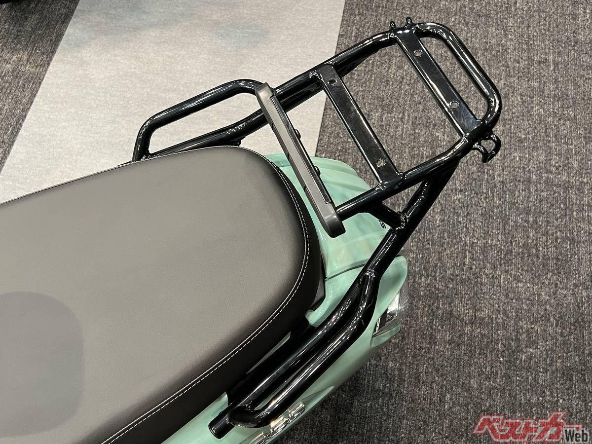 なんとリアキャリアを標準装備。ゴム製グリップも備わっており、パッセンジャーにも優しい。