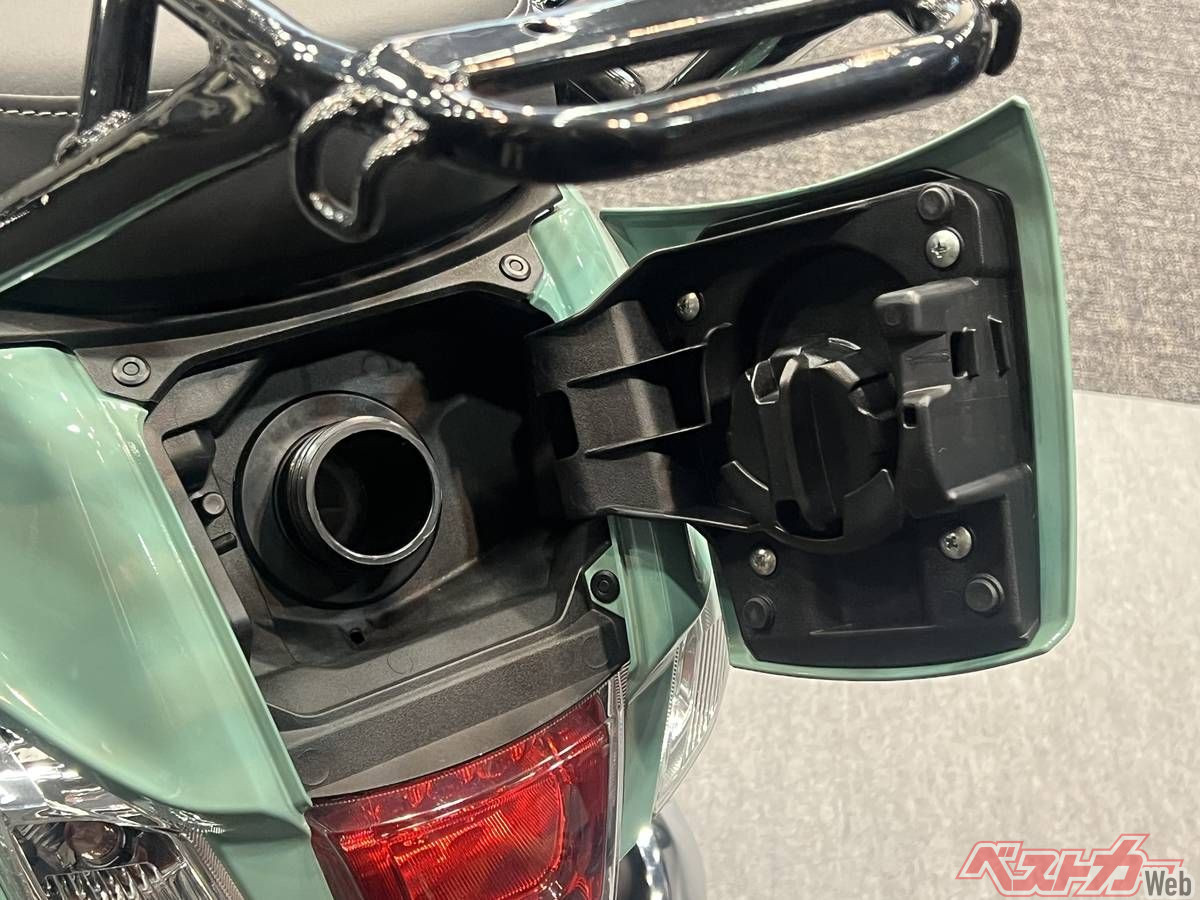 燃料キャップがカバーされ、灯火類もデザインを変更。テールまわりの印象はかなり変わった。