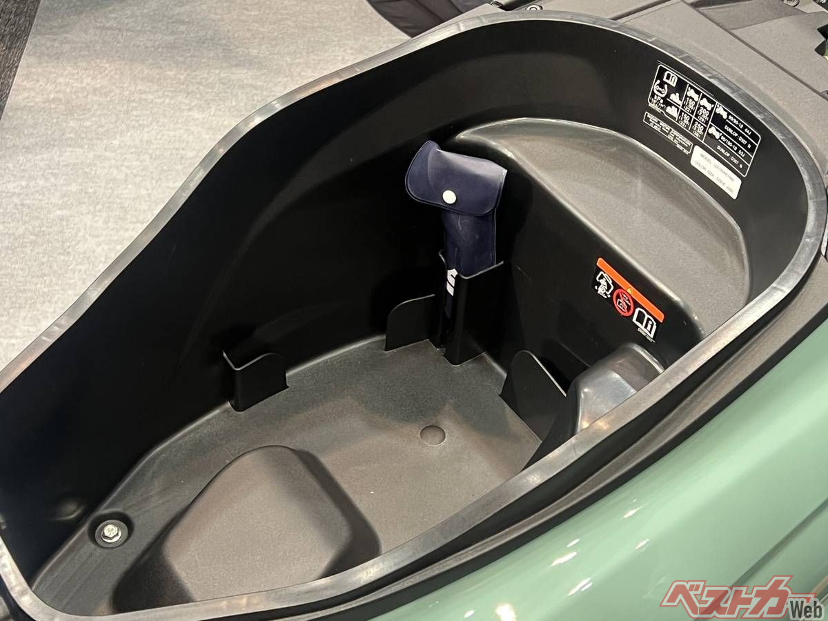 大きくなったメットインはヘルメット1個を余裕で格納できそうだ。