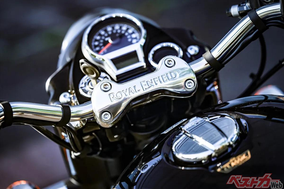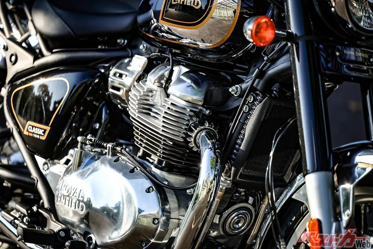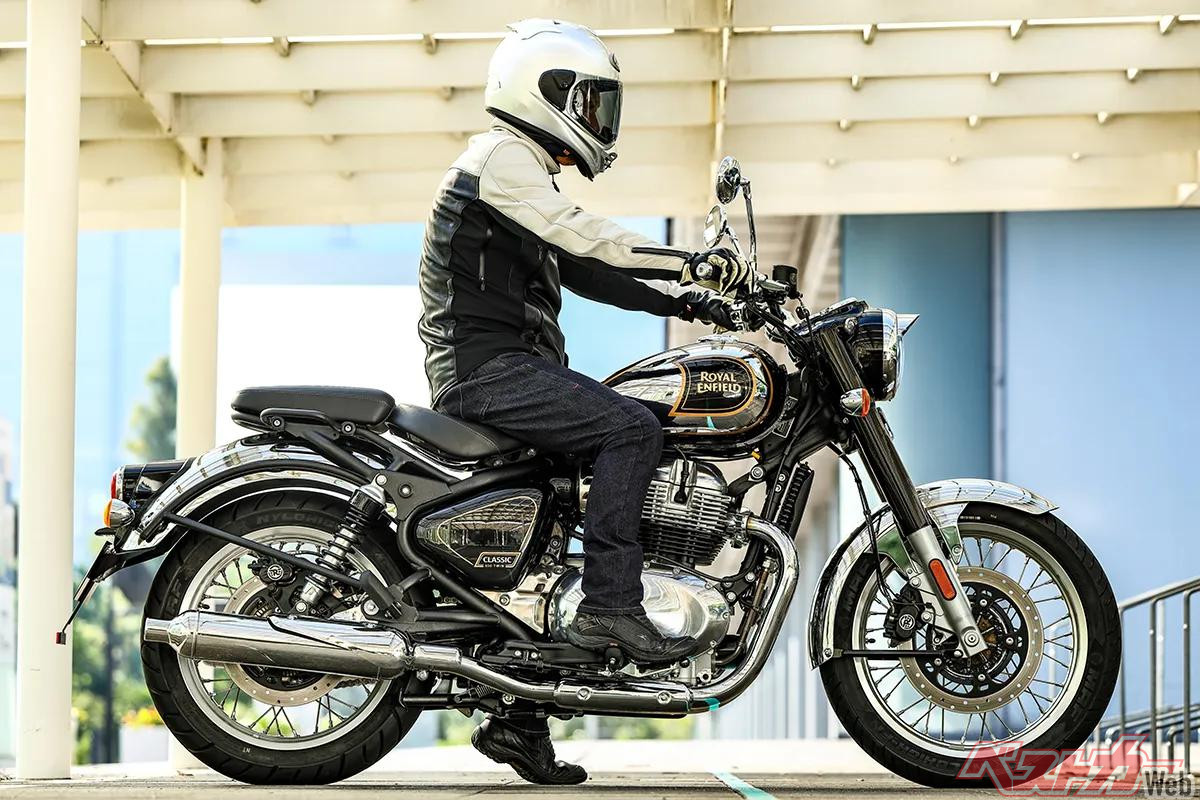 開発の背景を知ると、クラシック650はロイヤルエンフィールドが生み出した工芸品のようにも見えてくる。それだけ細部にこだわった1台なのだ。一目でわかる気品の高さと大胆さ、さらに現代のバイクとは思えない流れるように繋がる各部のディテールの美しさに奥行きを感じる。空冷エンジンのフィンの奥に見える景色や、シート下とフレームのクリアランス、タンクのハンドストライプのラインなど、計算されたディテールが『本物らしさ』を伝えてくる。また、左右どちらから見ても絵になるスタイリングも素晴らしい。