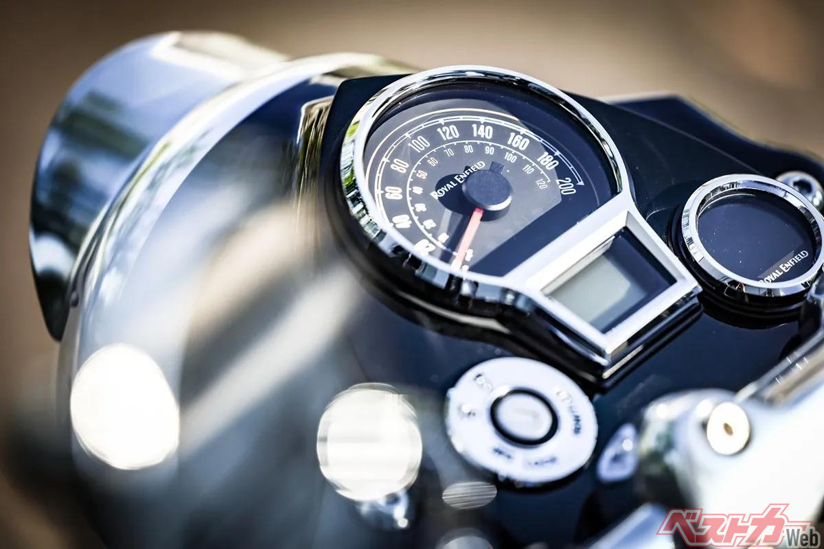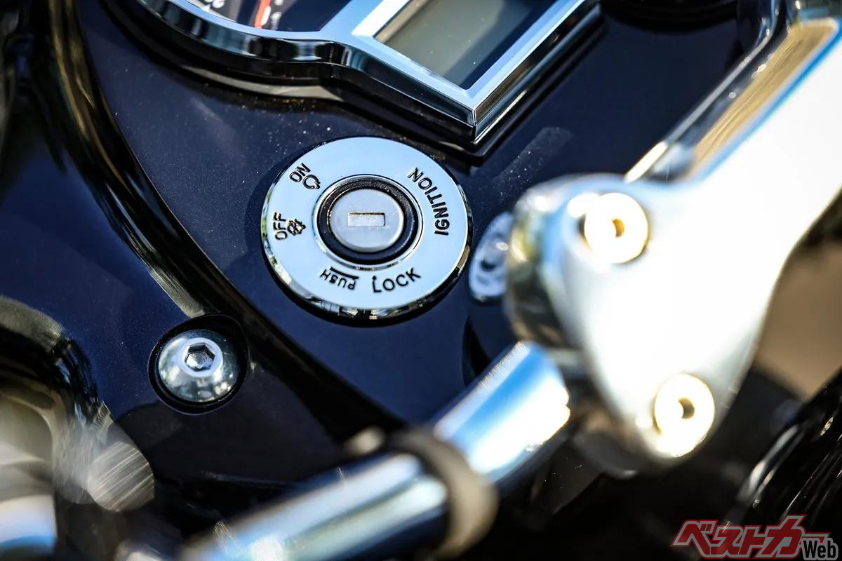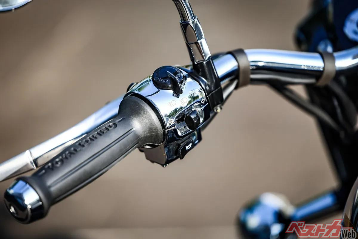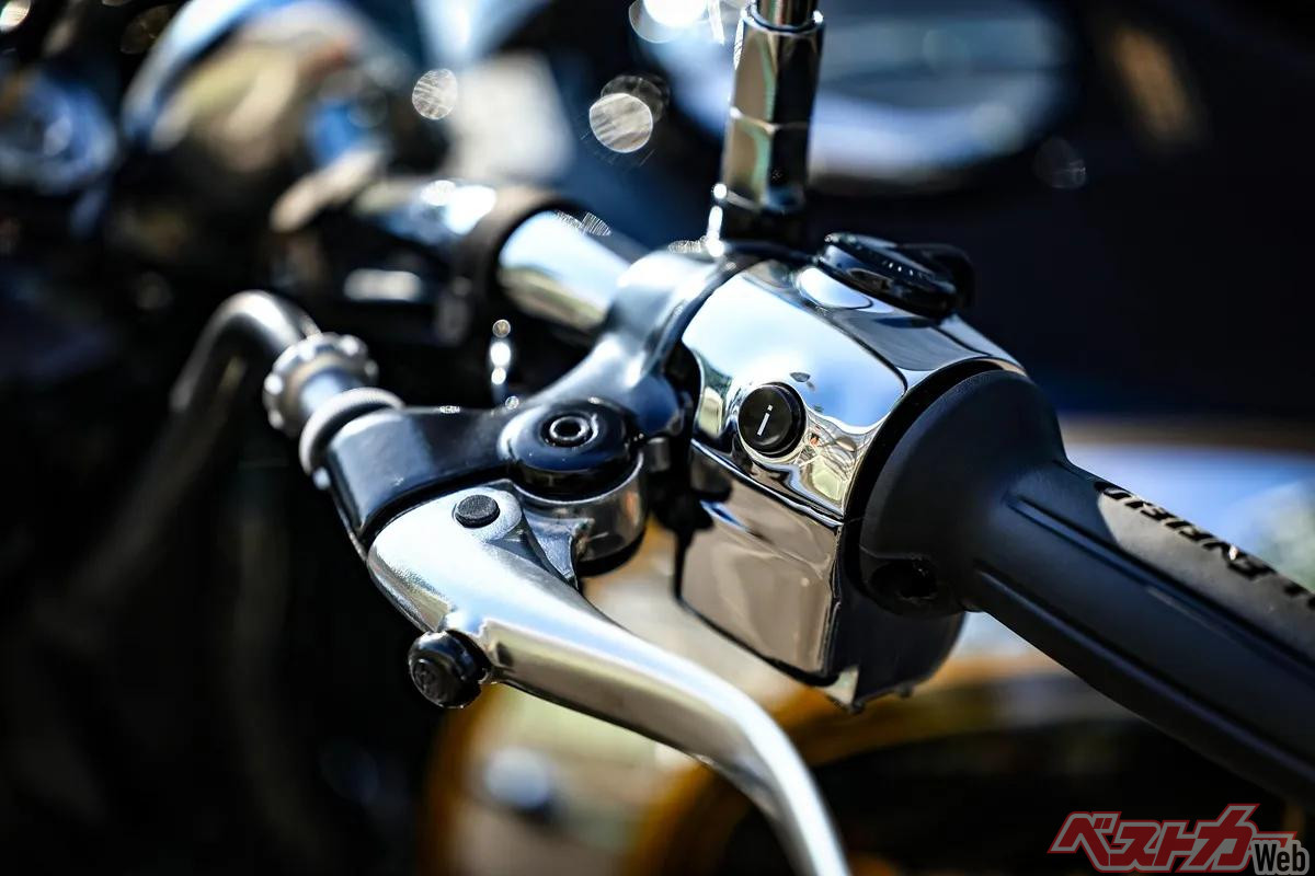 例えばこのバイクに四角いメーターが装着されていたらガッカリしますよね。コストダウンのためにクロームパーツを減らすこともできますが、やはりクロームが正しいのです。スイッチやキーリンダーなど細かい部分のメッキはそのためです。このスタイリング全体からストーリー性とオーセンティックさを感じていただけると嬉しいですね」とプロダクトマネージャーのグレン・コーベットさんは語る。